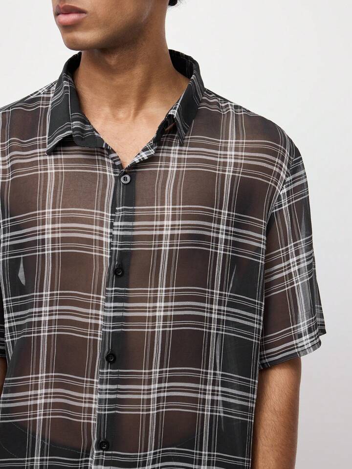 ROMWE Avant قميص رجالي مفكك بأكمام قصيرة وطباعة منقوشة بشبكة للصيف