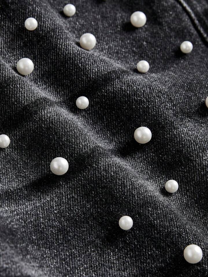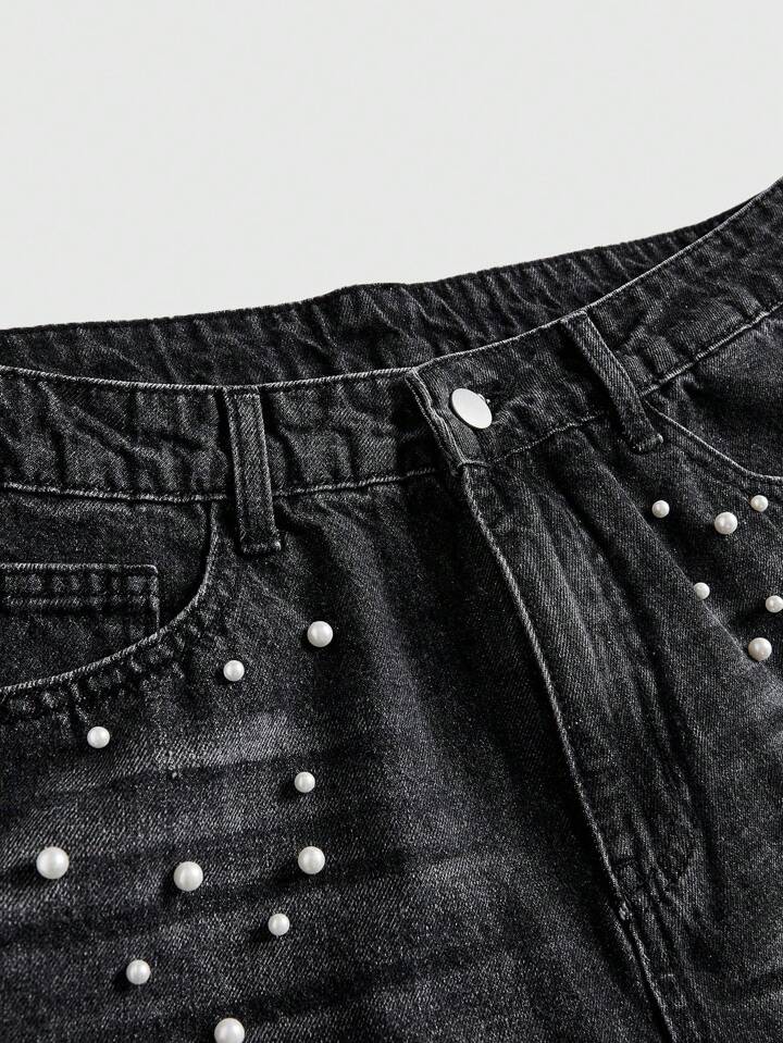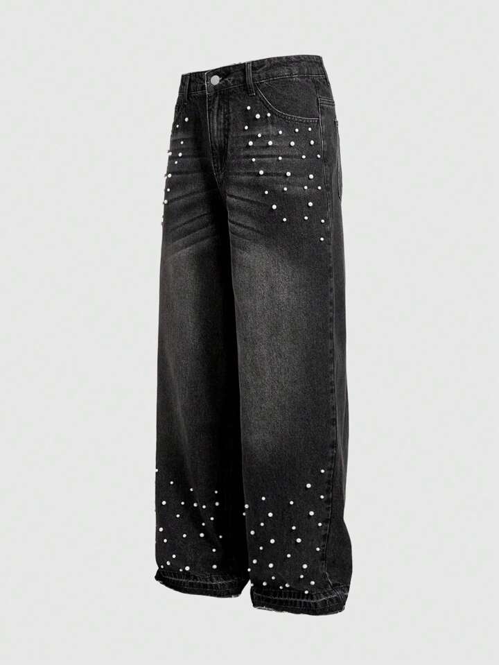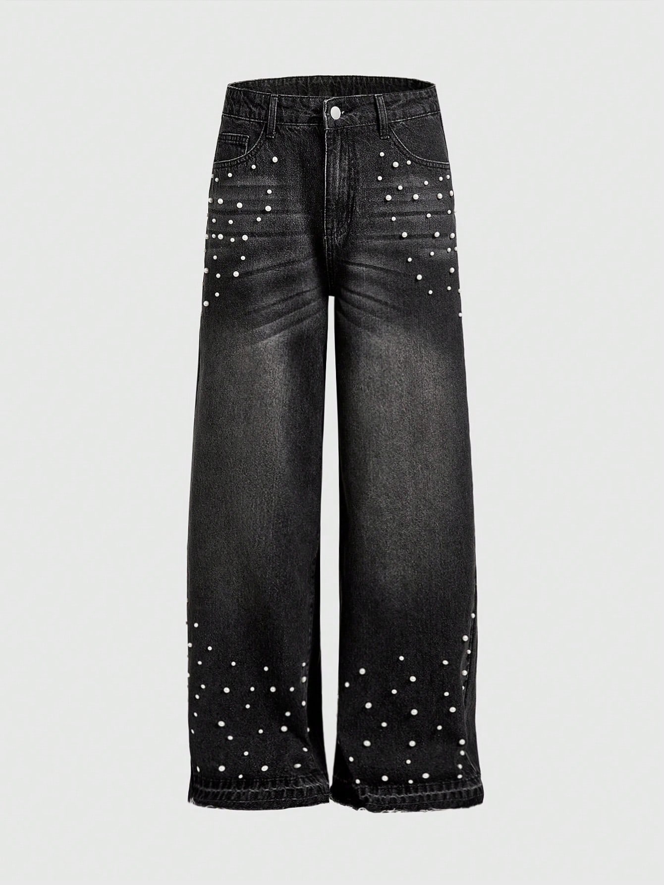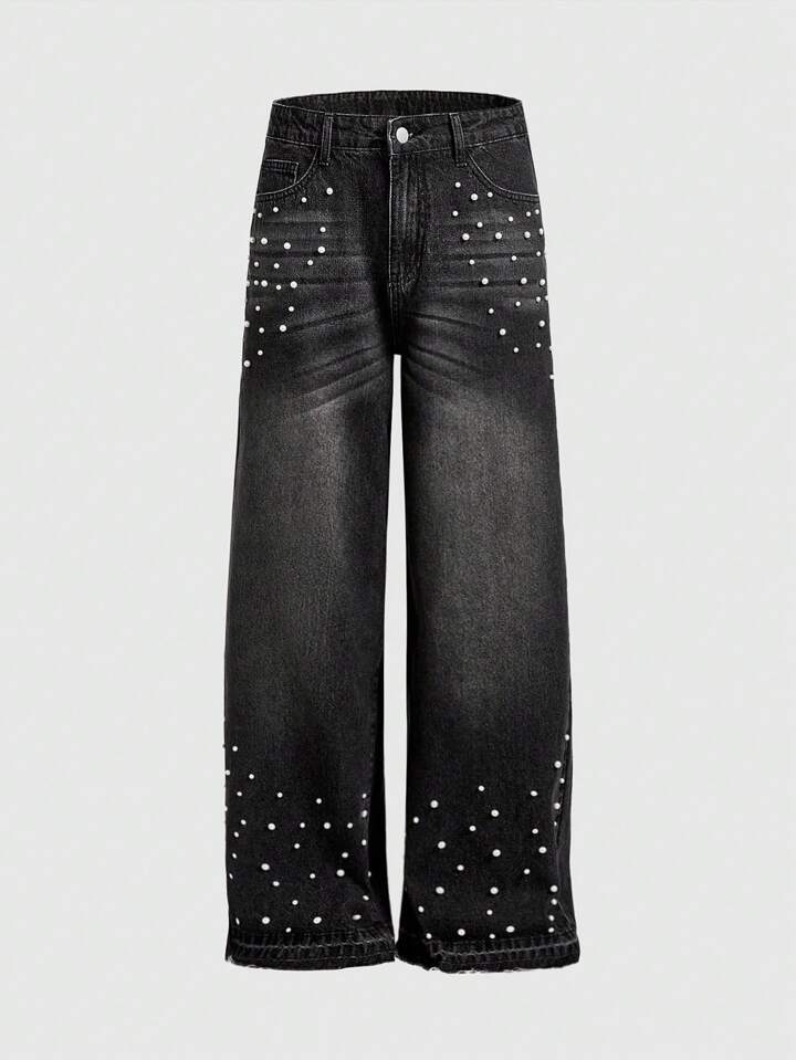 ROMWE Avant بنطال جينز كاجوال للرجال مزين بخرز الزينة الاصطناعي المغسول