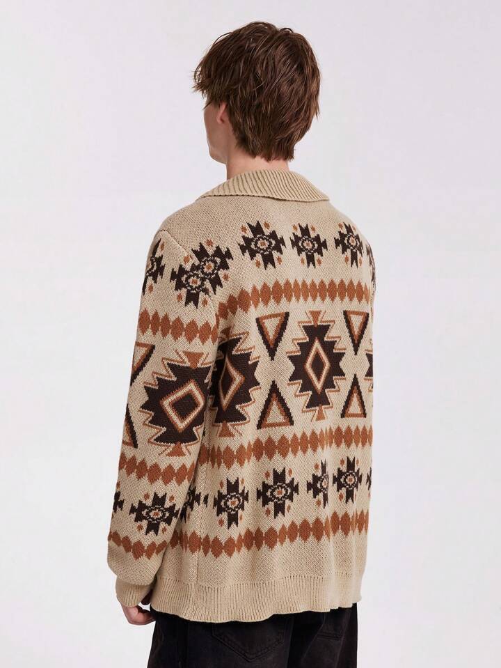 ROMWE Avant سترة كارديجان مخطط مطرزة ذات ياقة شال من الصوف طويلة الأكمام، طراز قديم للرجال