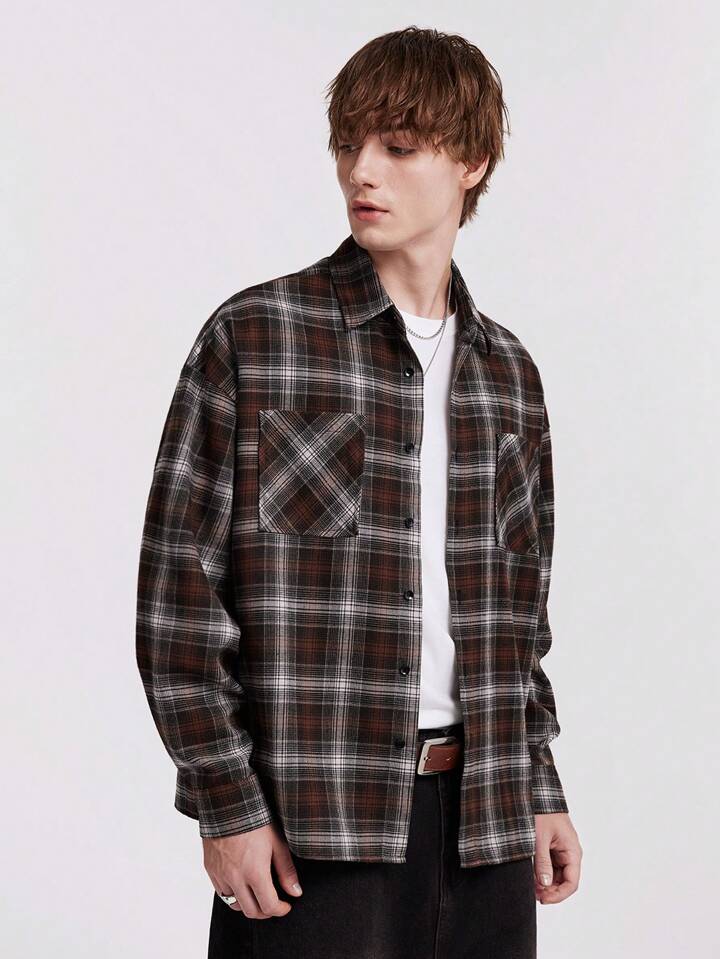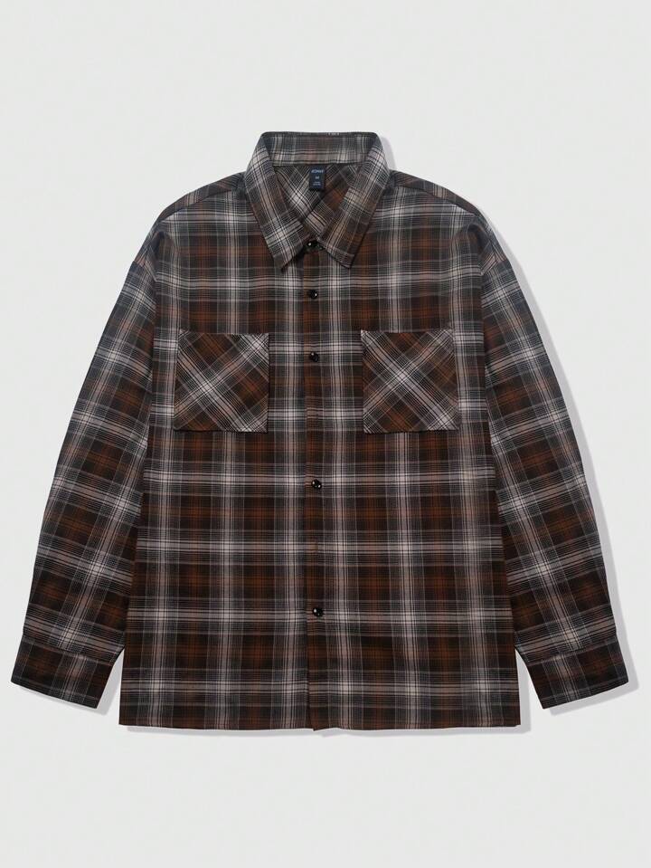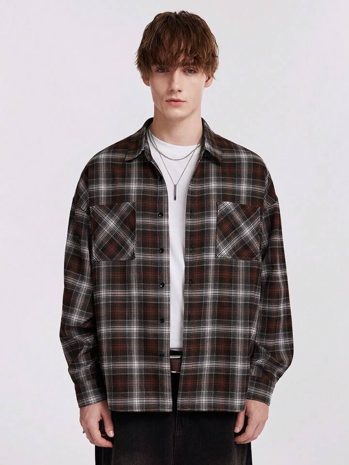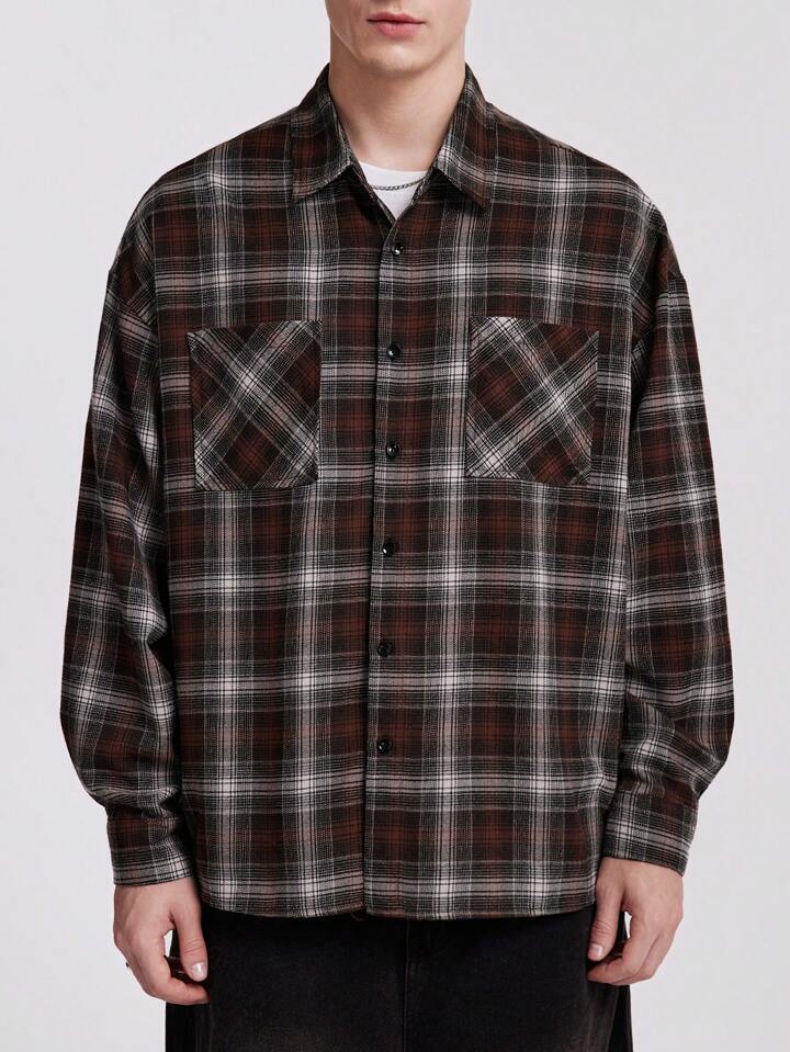 ROMWE Avant قميص نسائي كبير بنمط مربع منقوش قديم فضفاض بأكمام طويلة