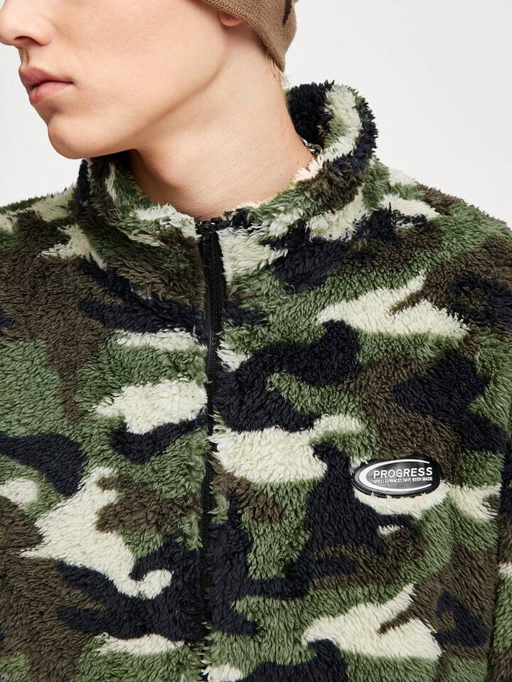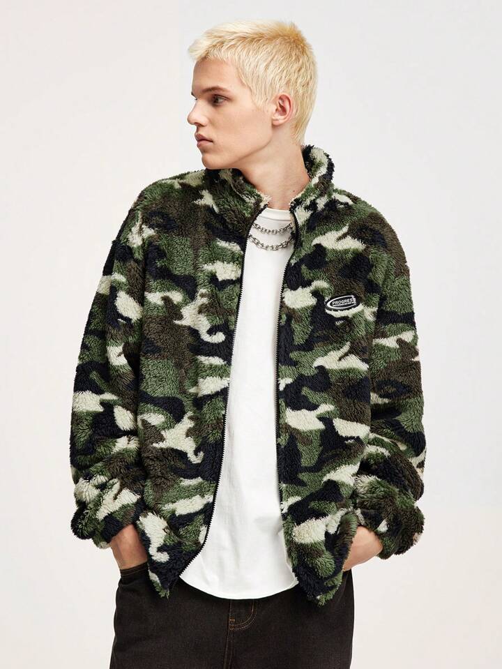 ROMWE Avant معطف مطبوع بالكامو للرجال ، مناسب للارتداء اليومي في الخريف والشتاء