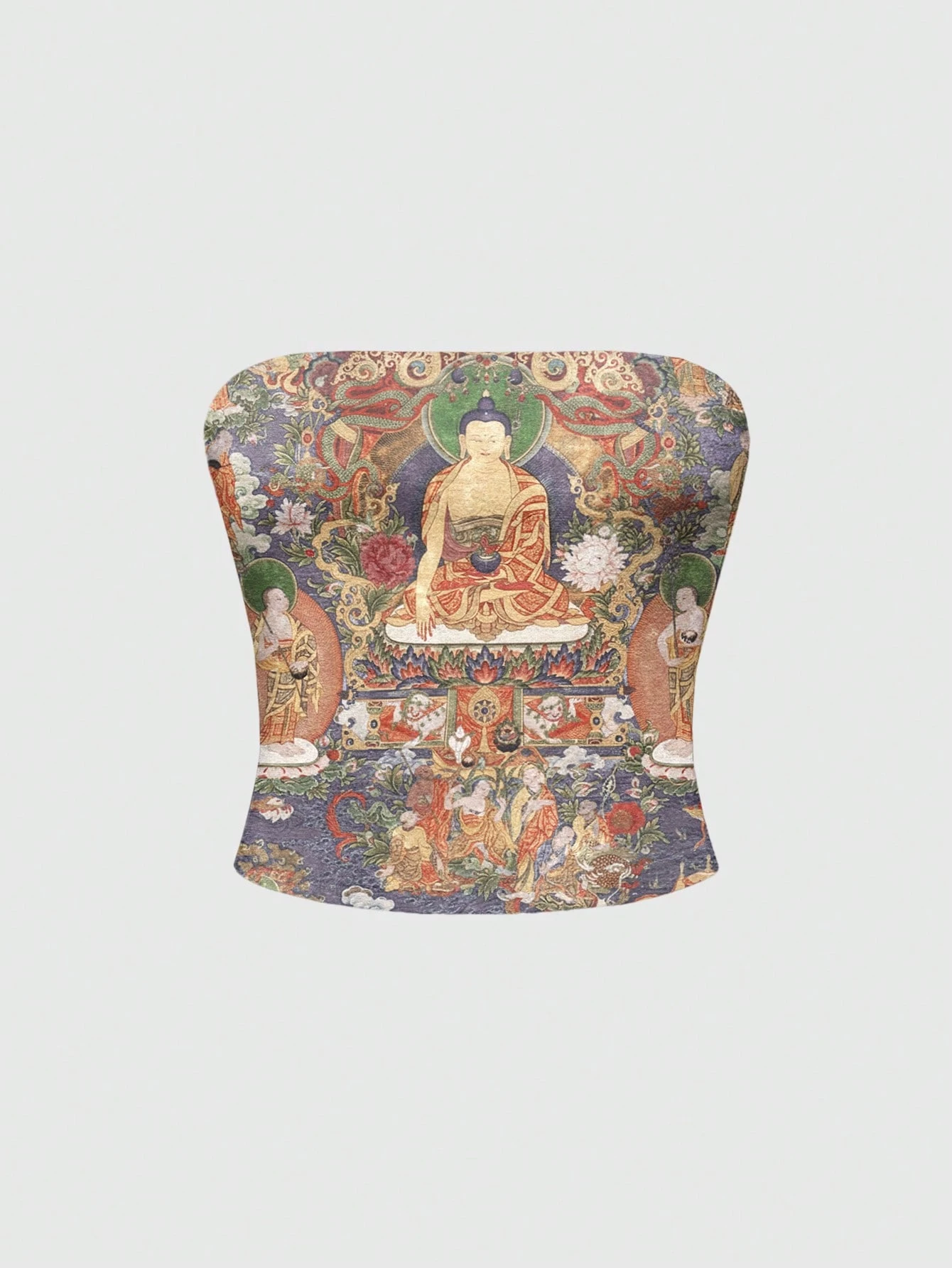 ROMWE Avant ملابس علوية أنبوبية مطبوعة بنمط لوحة جدارية دينية بوذية على الطراز الصيني الجديد للنساء