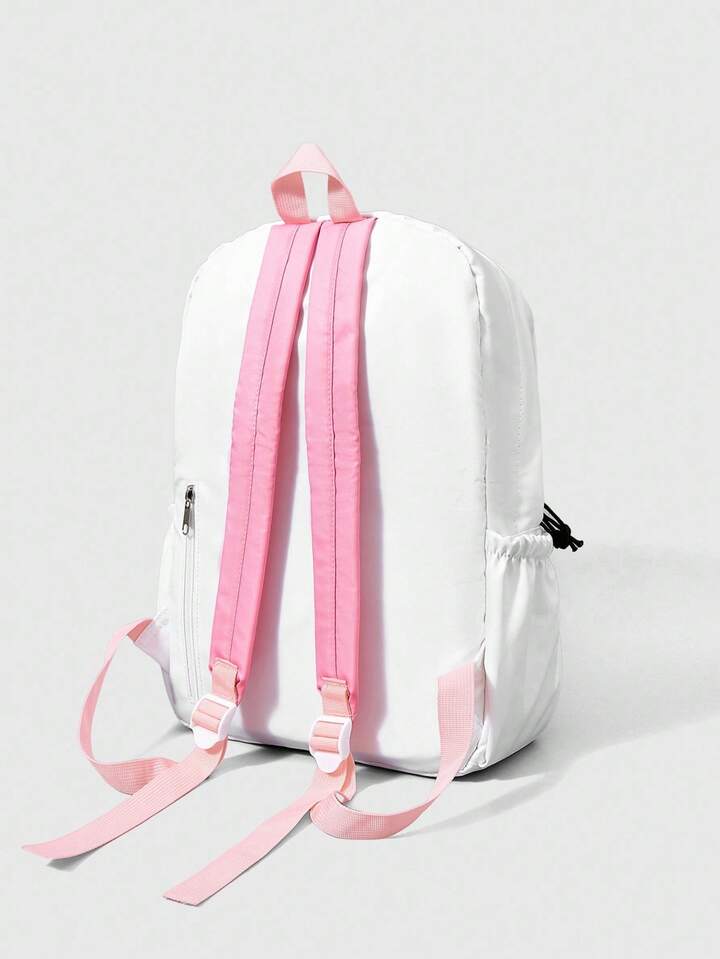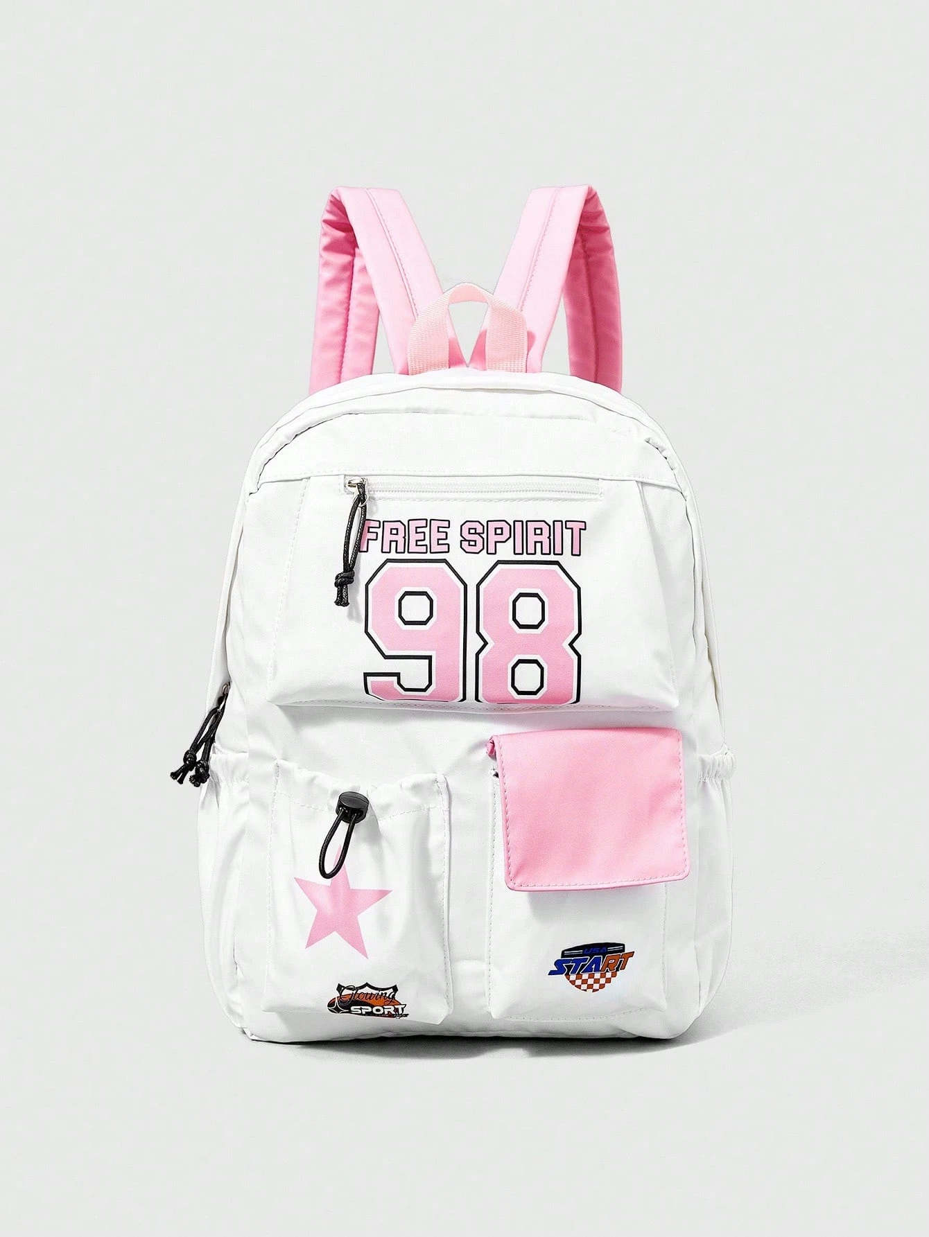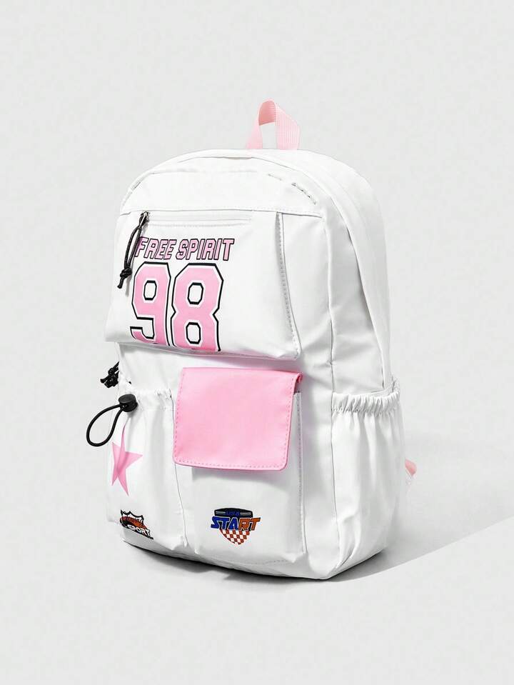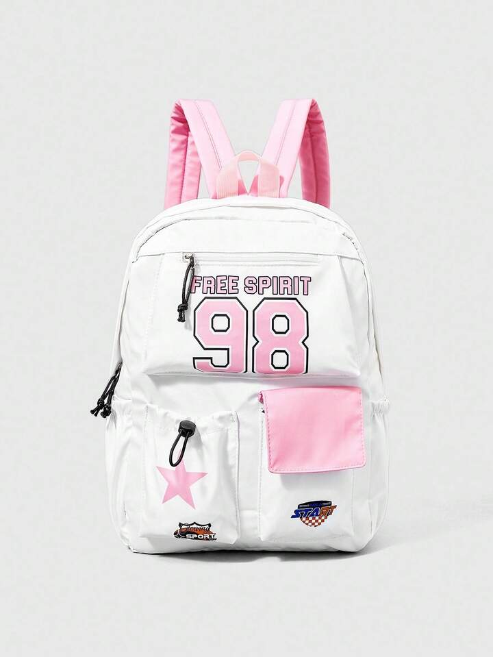ROMWE Avant حقيبة ظهر سعة كبيرة مطبوع عليها الرقم 98 باللون الوردي، مناسبة لموسم العودة إلى المدرسة