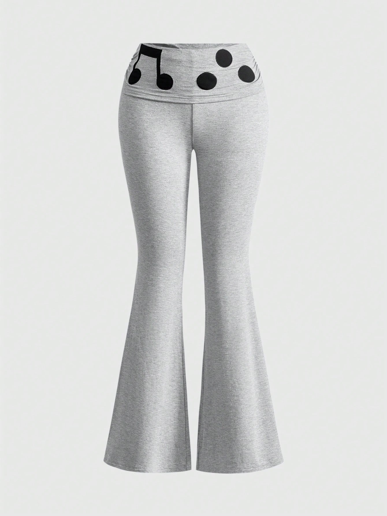 ROMWE Avant بنطلون نسائي ذو ساق واسعة بطراز رجعي مع تطريز وقطع موسيقية، مناسب للقوام الممشوق