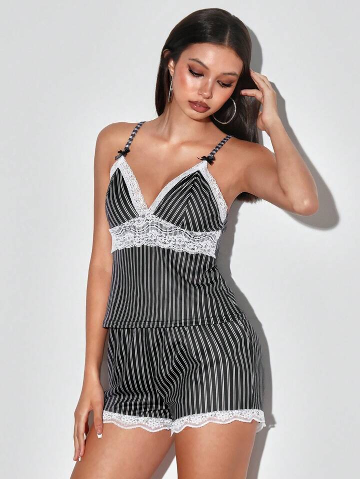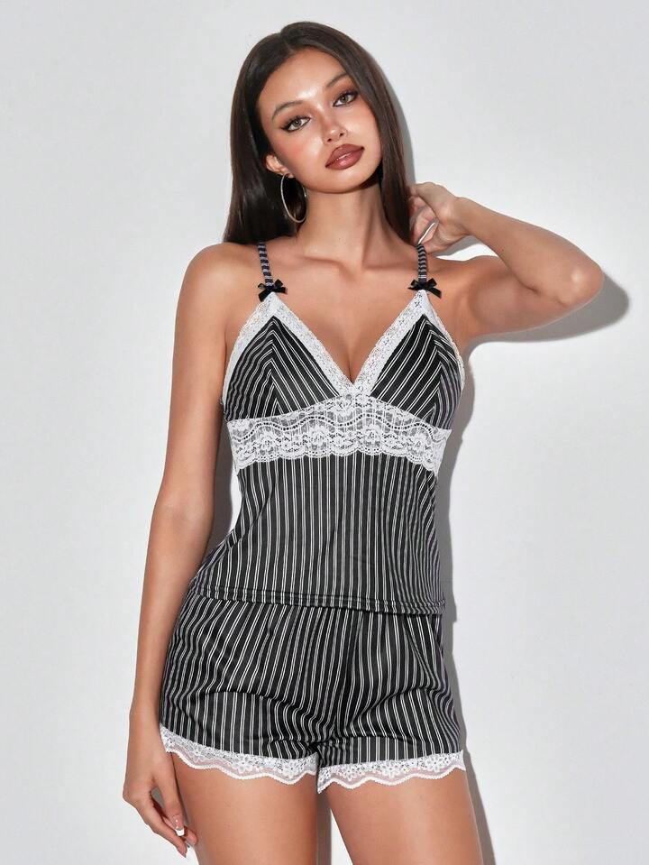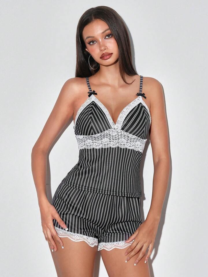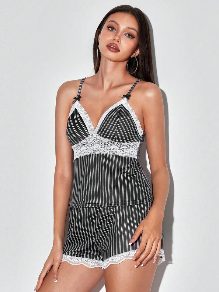 ROMWE Avant طقم نوم كاميسول كاجول بقصة الحرائر مع شرائط صغيرة من الدانتيل والألوان لفصل الصيف