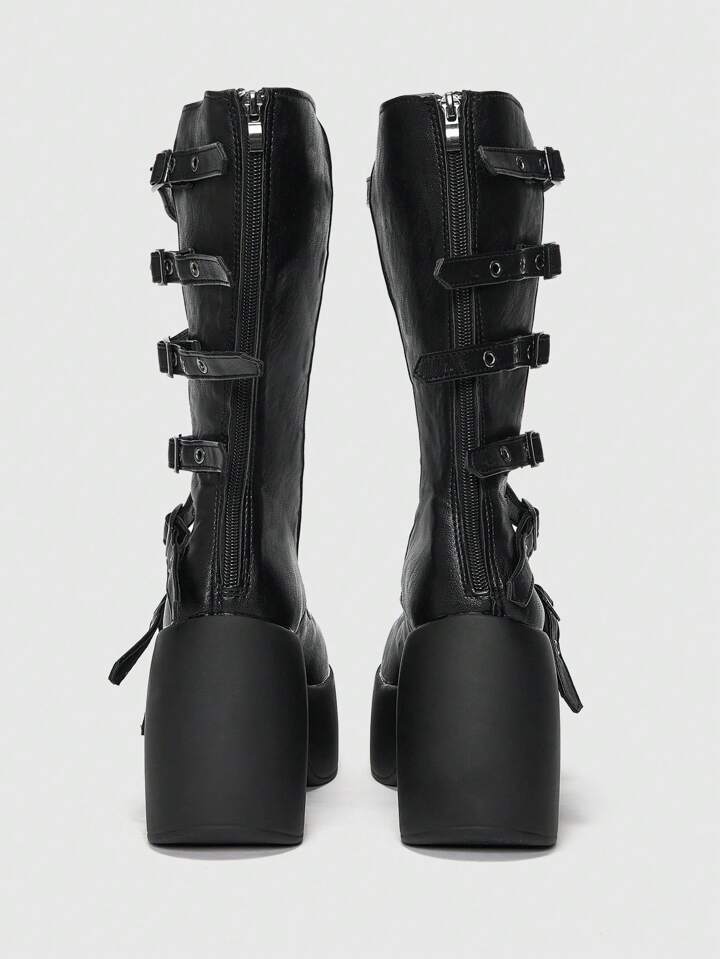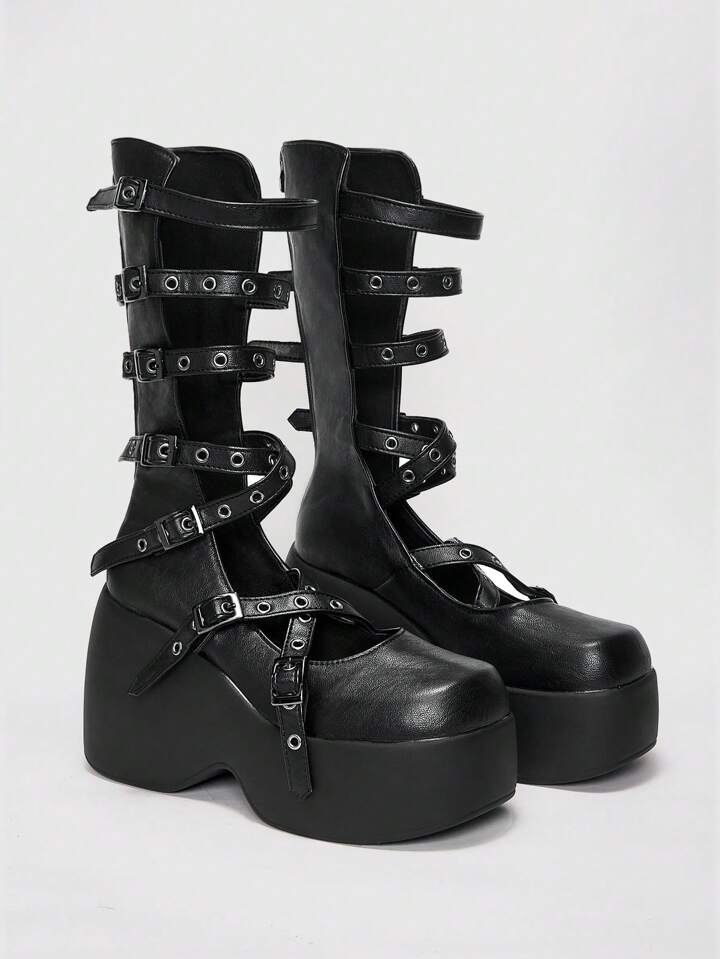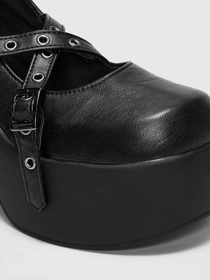 ROMWE Avant نساء بديكور مشبك باصابع قدم دائري أحذية إسفين , البونك خارجي أحذية الموضة