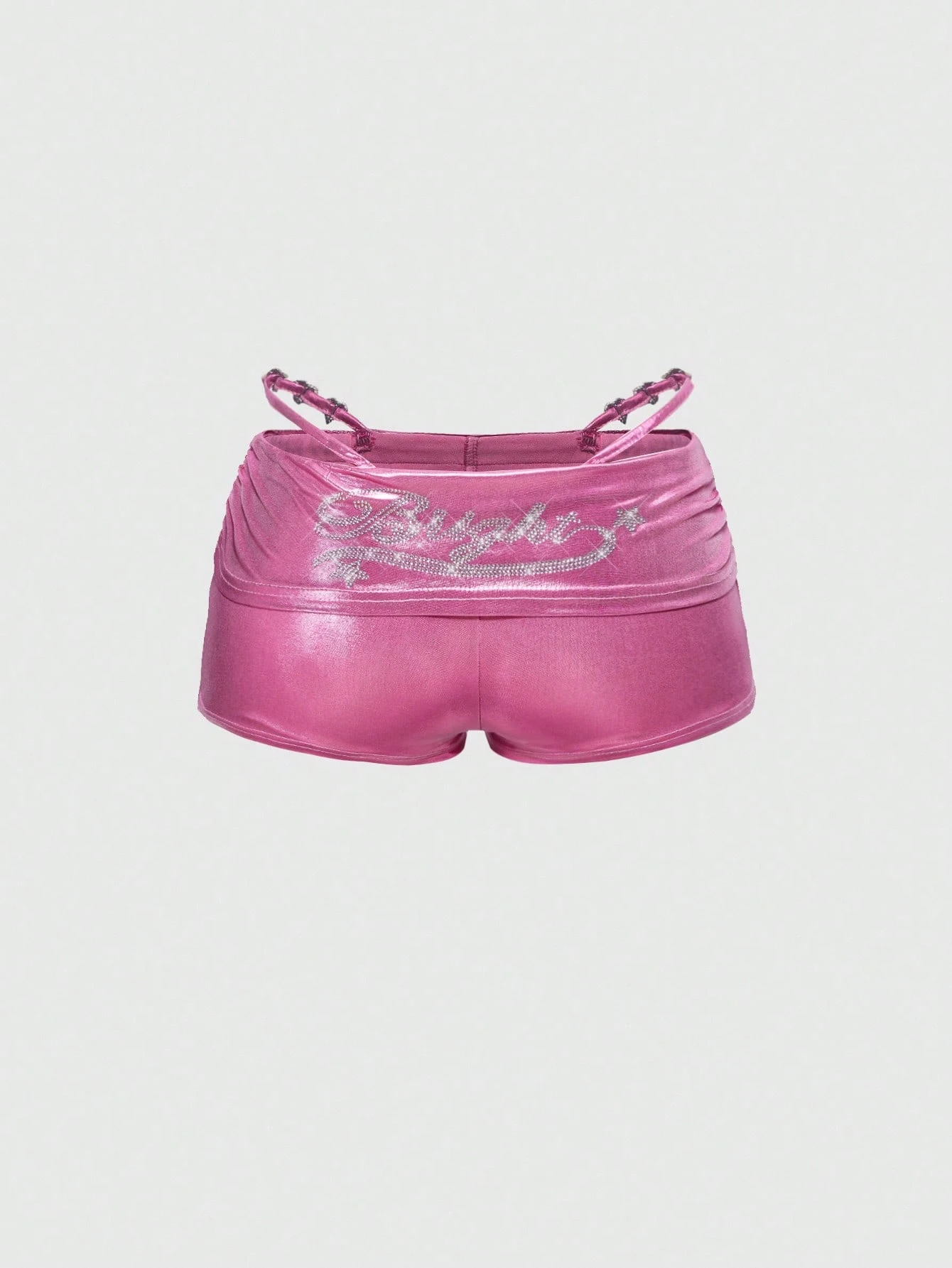 ROMWE Avant شورت بسيط ملون للنساء مزين بالبلور على شكل قلب، عصري