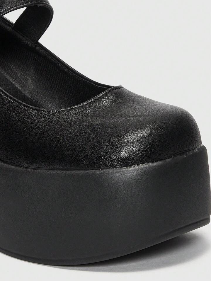 ROMWE Avant أحذية ماري جين باصابع قدم مربع البونك أسود امرأة