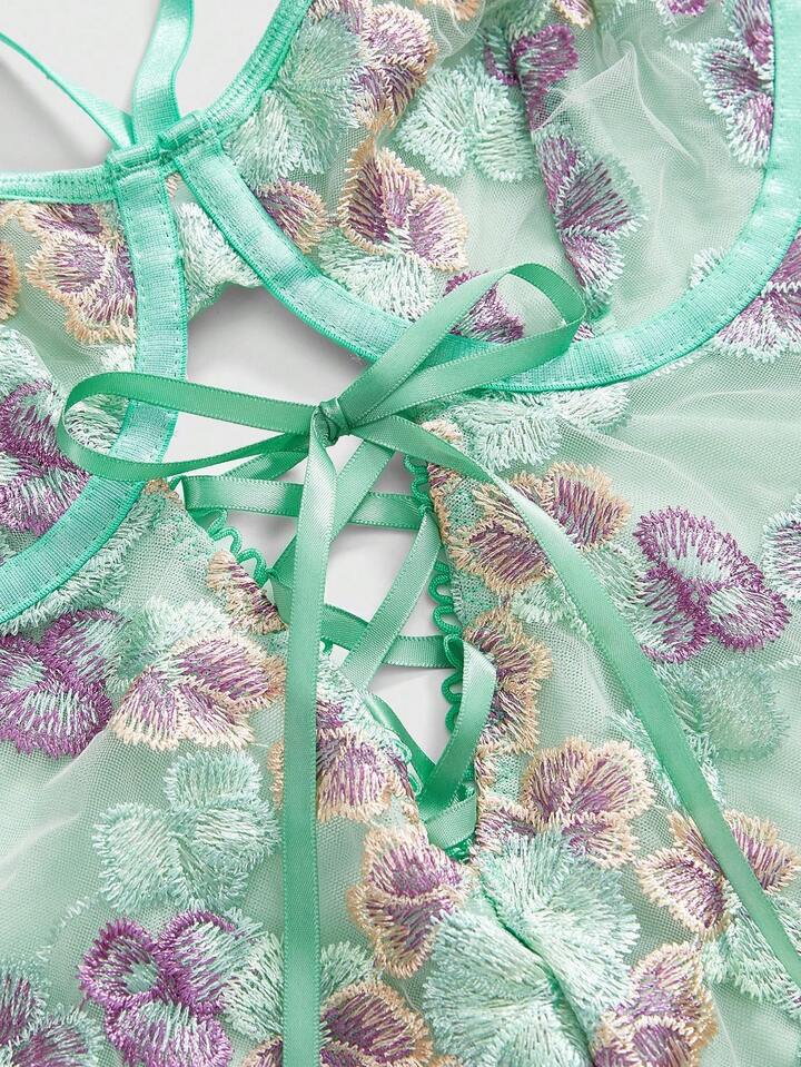 ROMWE Avant جمبسوت نسائية مطرزة بأزهار دقيقة بحزام لليدين، جذابة للصيف