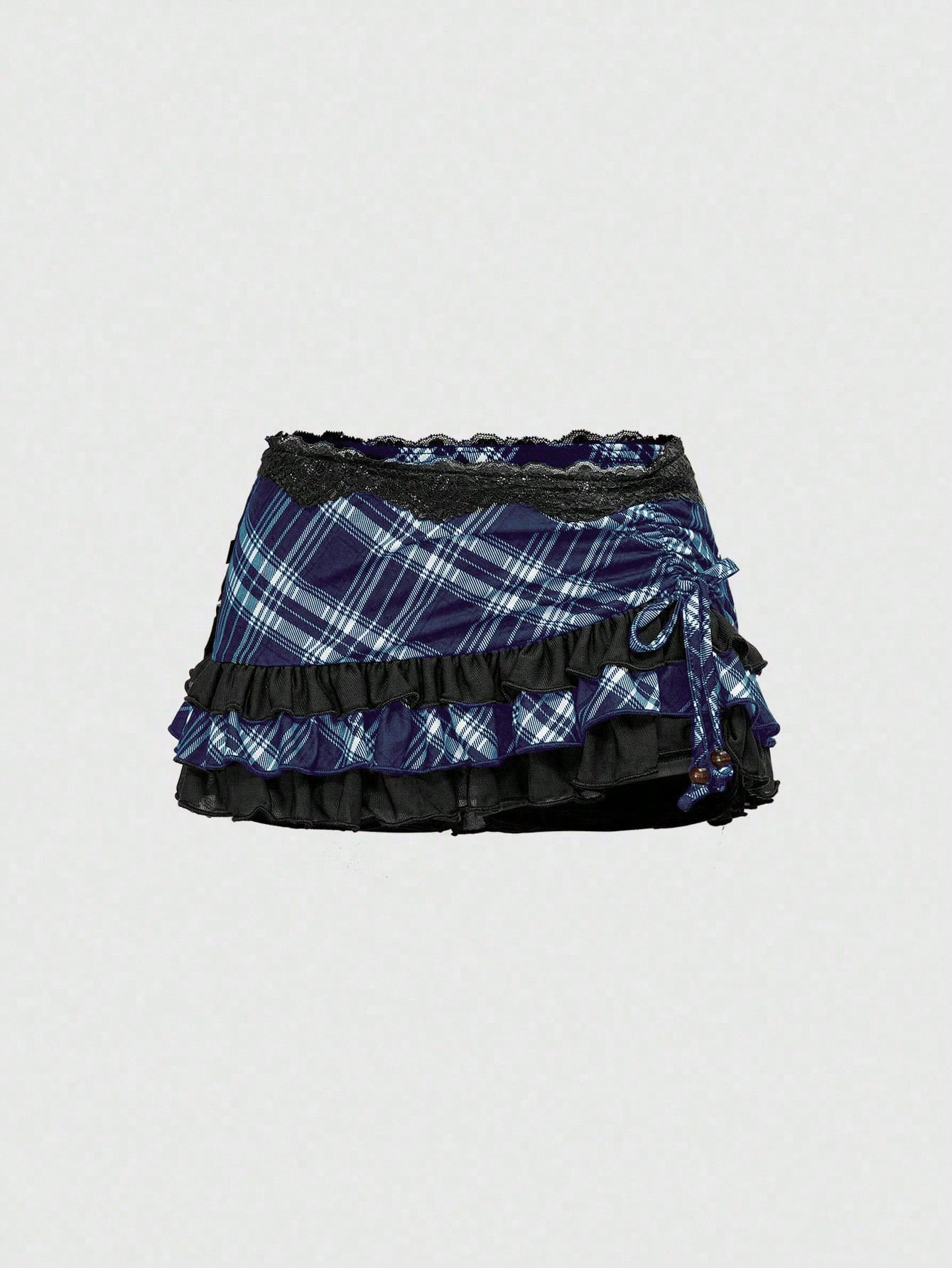 ROMWE Avant تنورة قصيرة غير متماثلة مزينة بالدانتيل والطباعة بطراز كلاسيكي للنساء