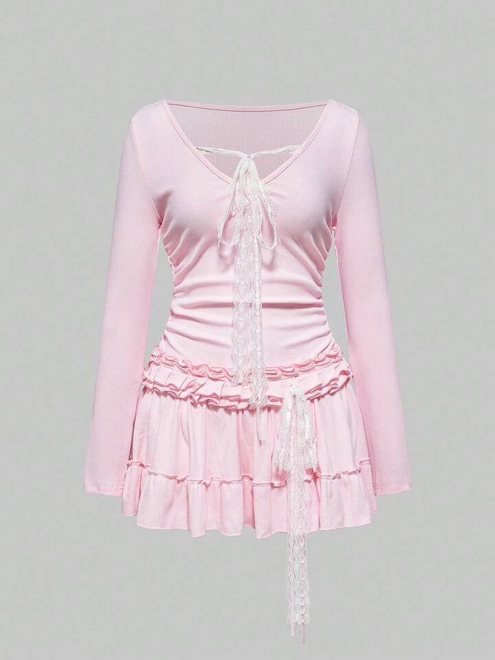 ROMWE Avant فستان قصير ضيق بأكمام طويلة وقصة مثيرة من طراز Y2K