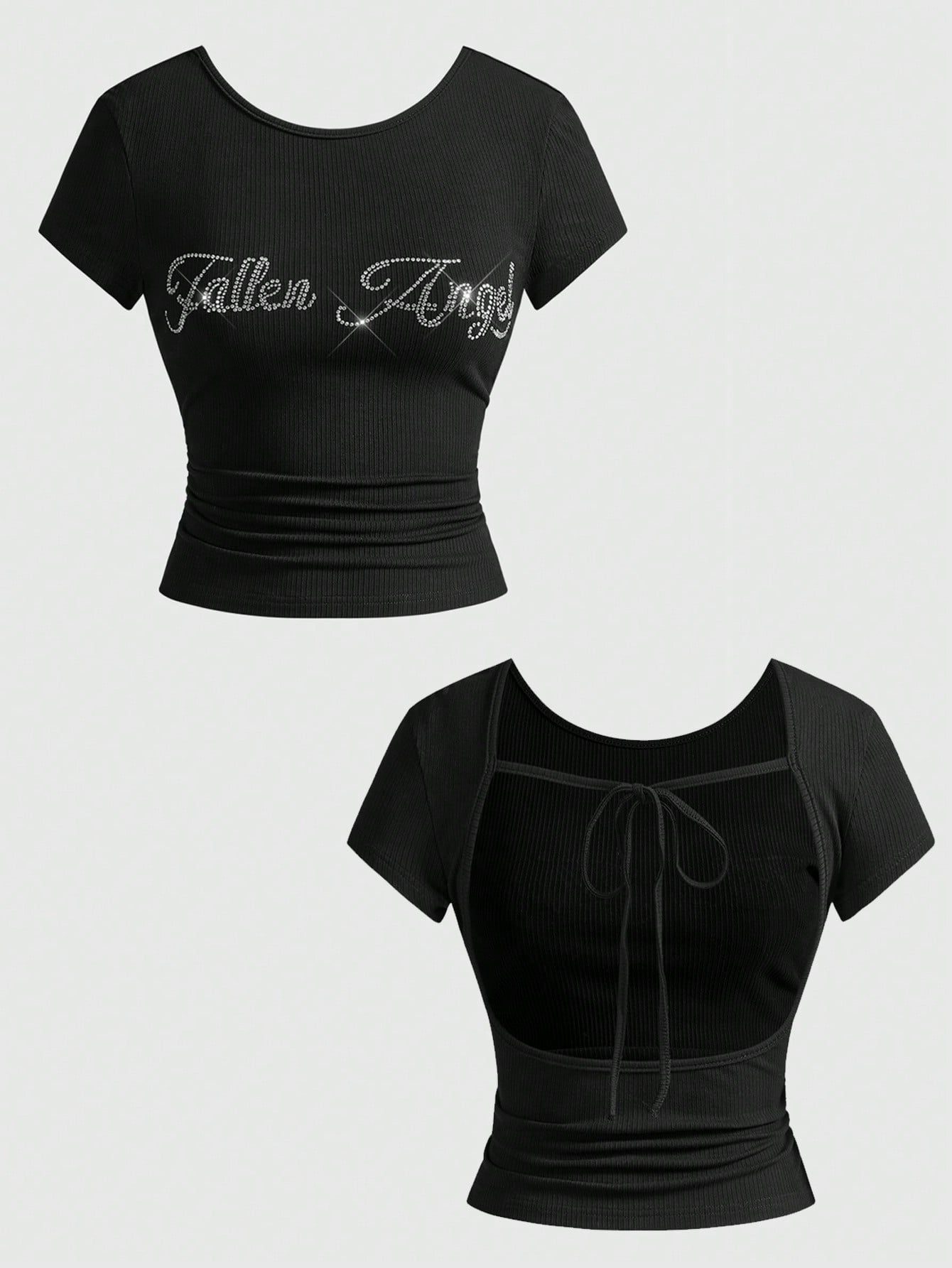 ROMWE Avant تي شيرت نسائي مطرز بالراين ذو خصر مناسب وظهر مكشوف من طراز Y2K Baddie للتنسيق مع كل الملابس