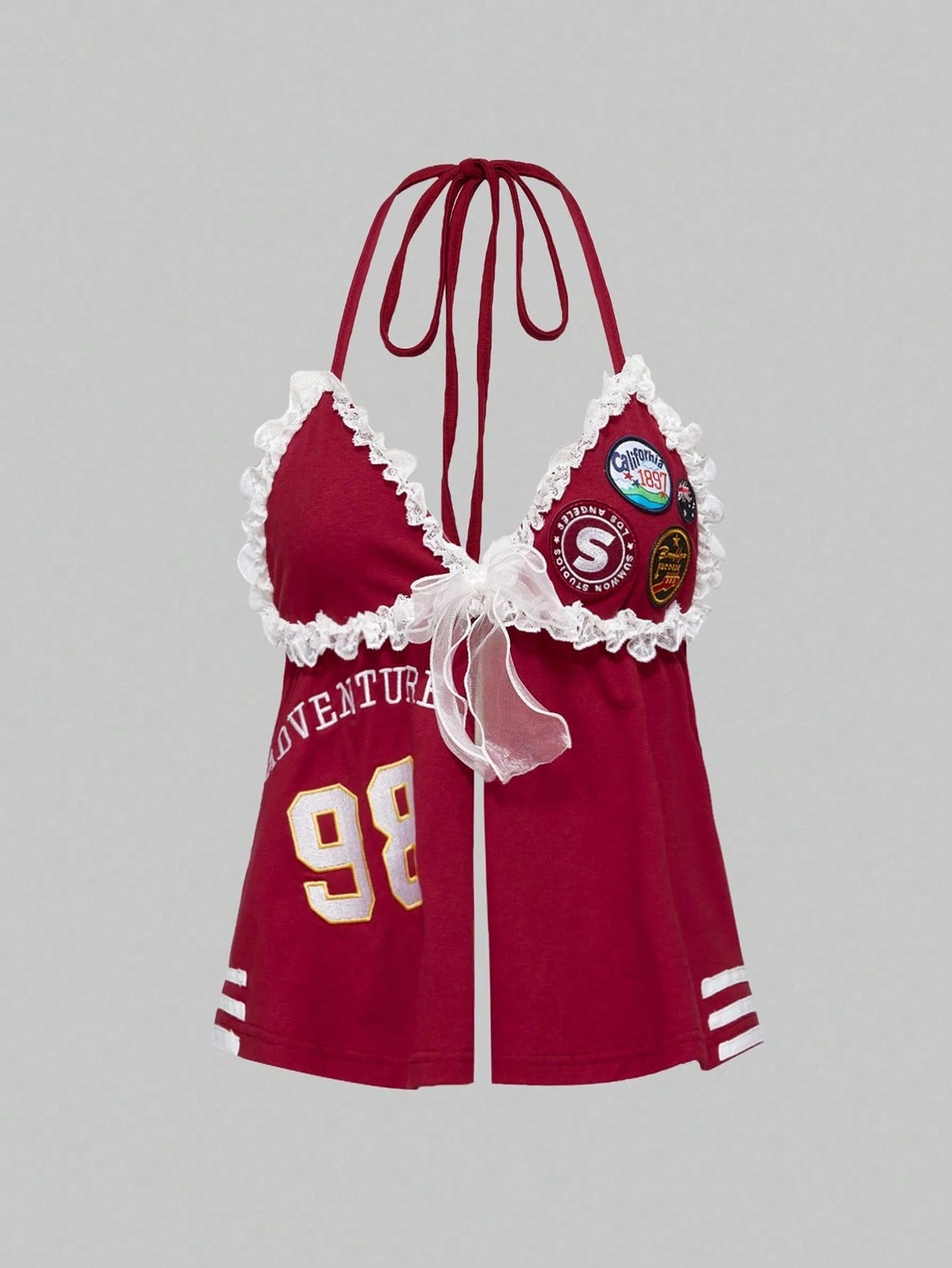 ROMWE Avant قميص كامي بتصميم رقبة حلقة مزين بالتطريز والدانتيل الأنيق بطراز رياضي بالي عصري للنساء