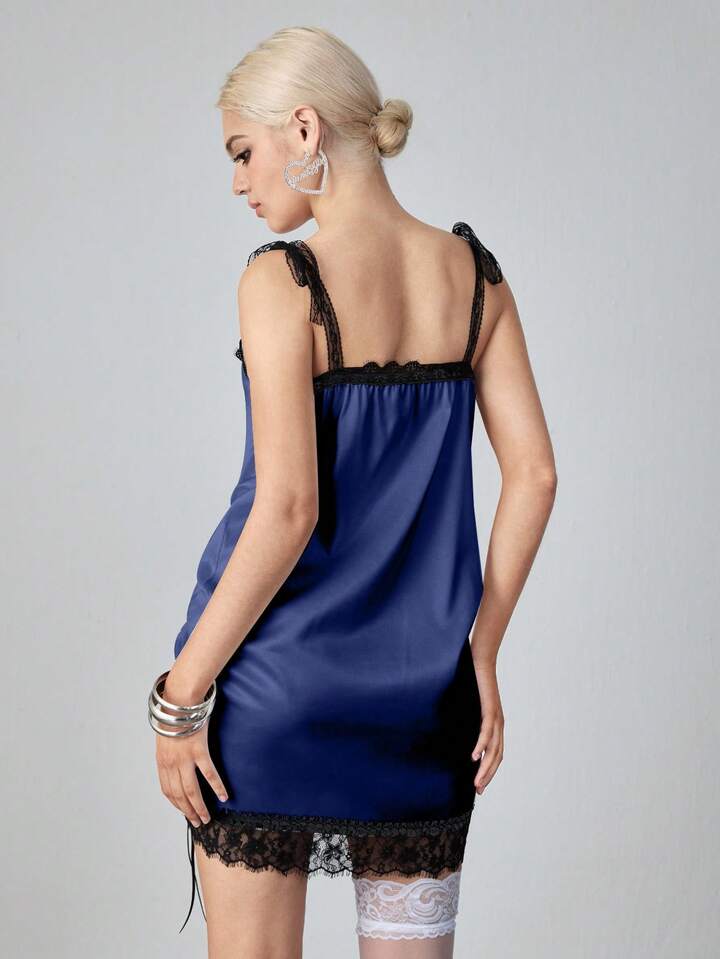 ROMWE Avant فستان قصير للنساء بأكمام منتفخة وسحاب مع تطريز دانتيل بطراز Y2K