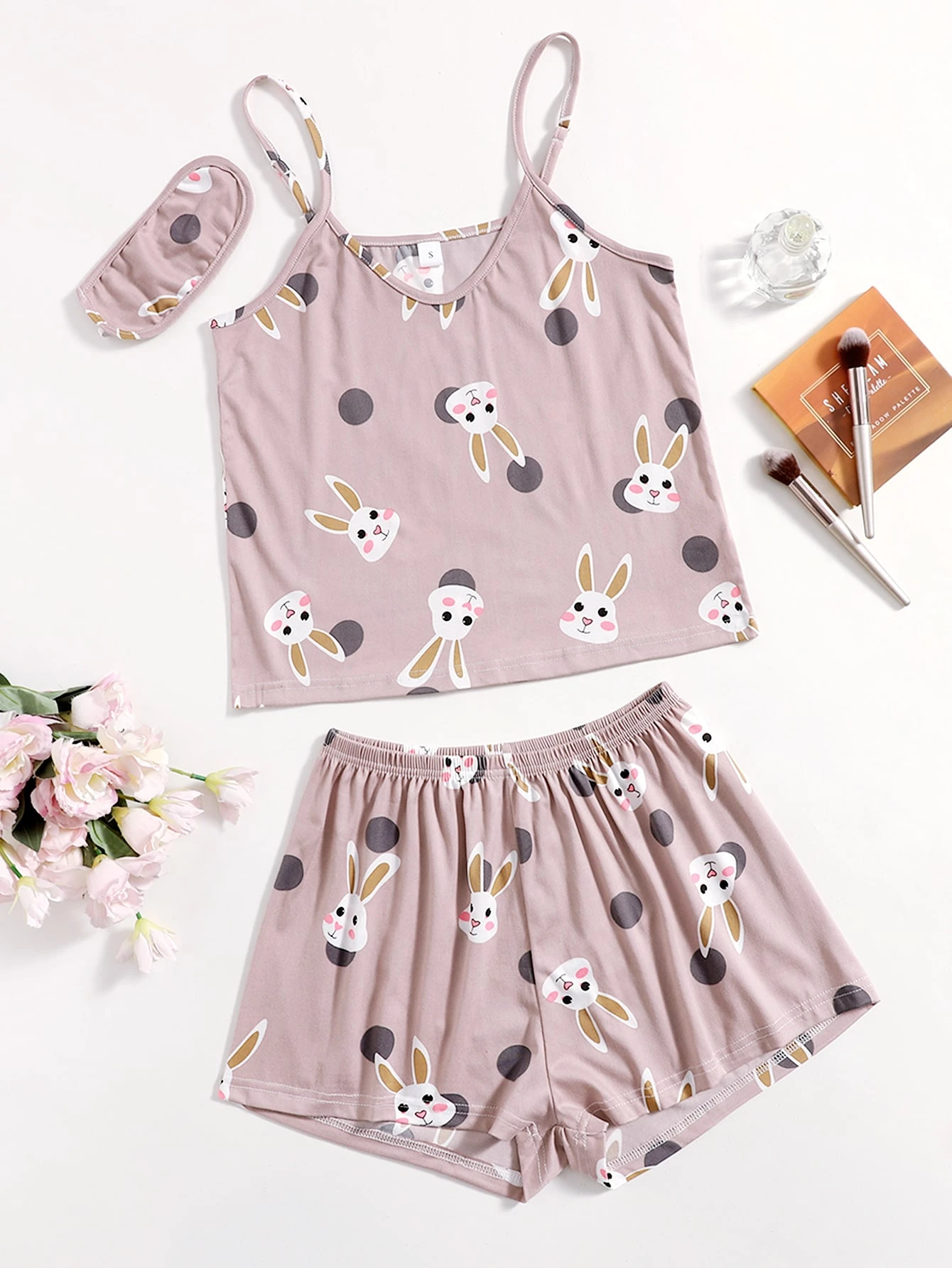 طقم بيجامة بطباعة ارنب مع غطاء عين