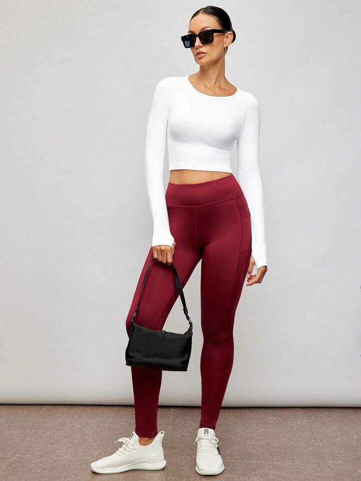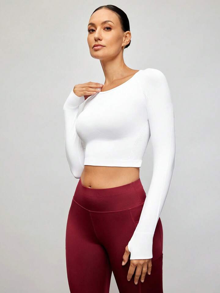 تيشرت رياضي بأكمام راجلان طويلة وقميص مصمم بفتحة إبهام