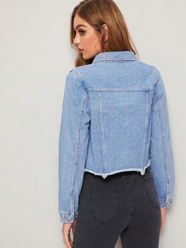 جاكيت الجينز بكيب الررفرف والحافة دون الغلاج