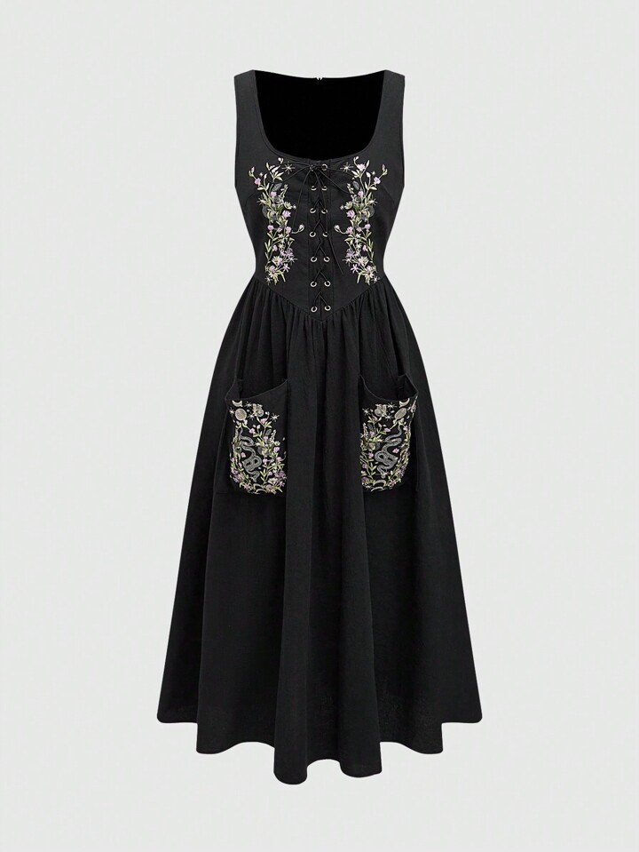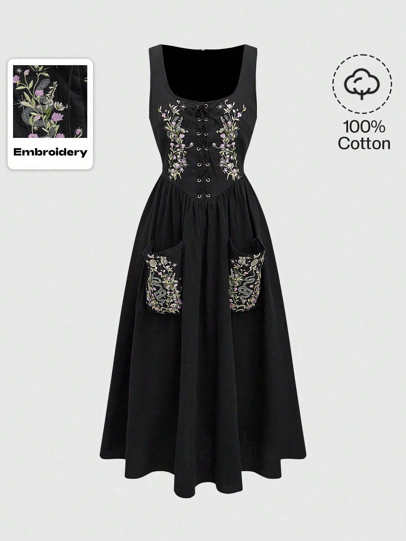 Goth فستان متوسط الطول بطراز عتيق أسلوب قوطي مظلم بتطريز جلد الثعبان، طراز نهضوي فينتاج للنساء