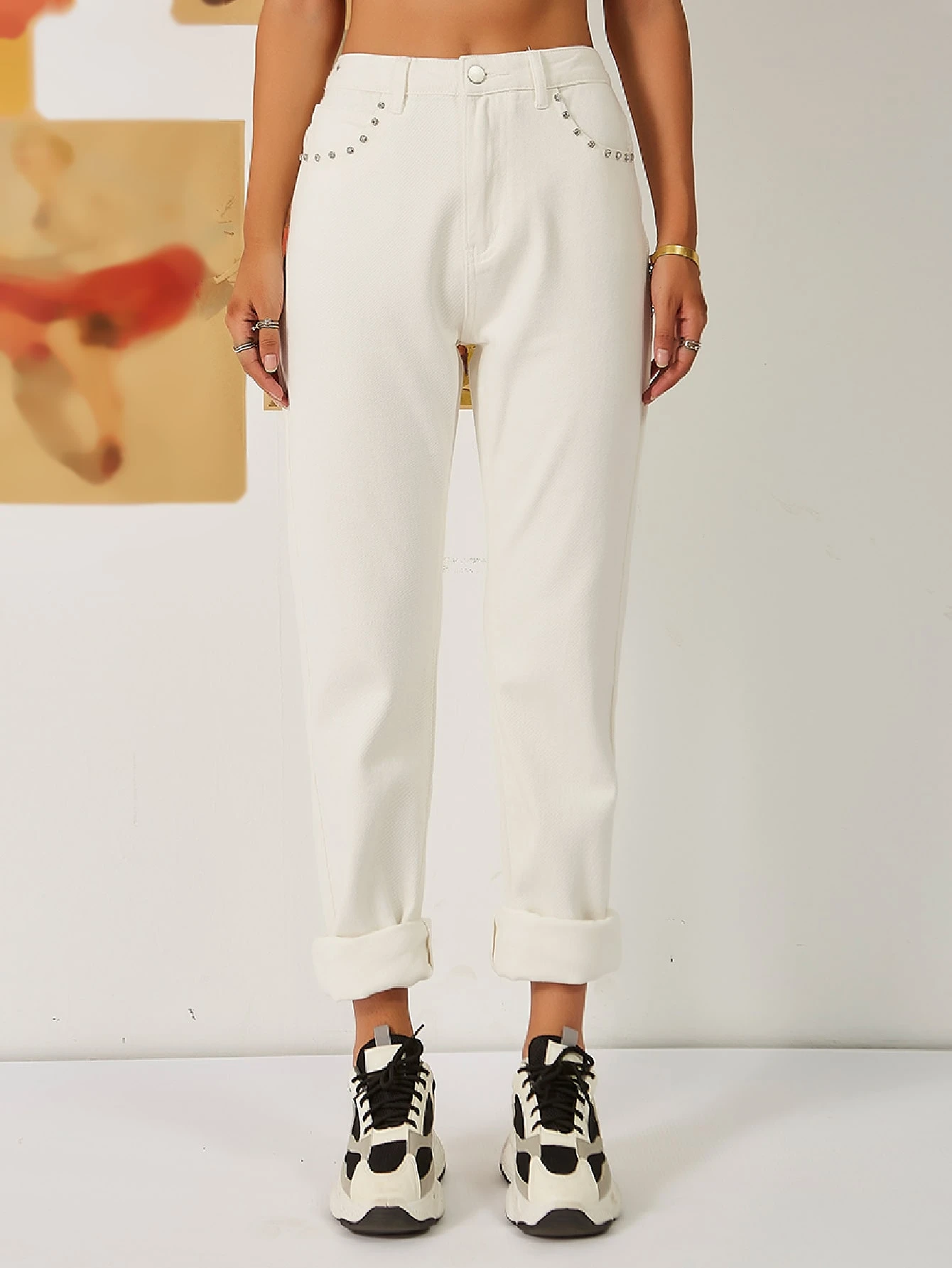 بناطيل الزر الجيب حجر الراين الصاف كاجوال