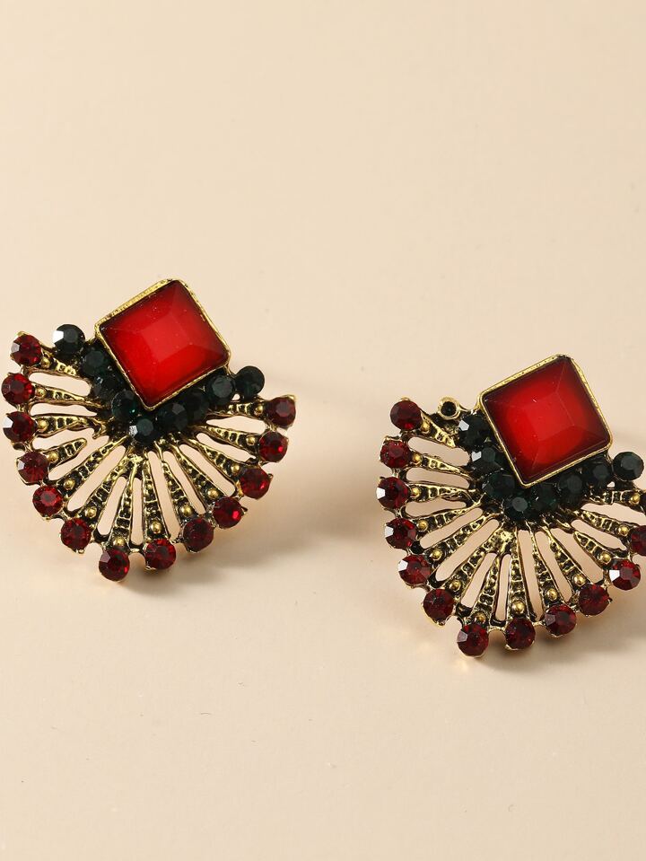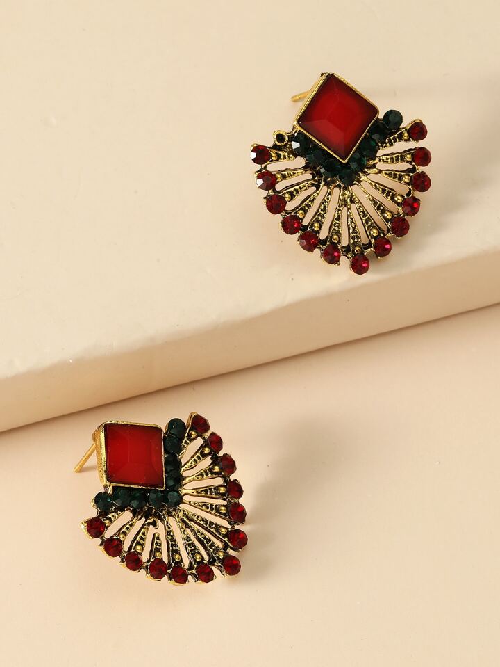 اقراط مسماري بتصميم مروحة حجر الراين