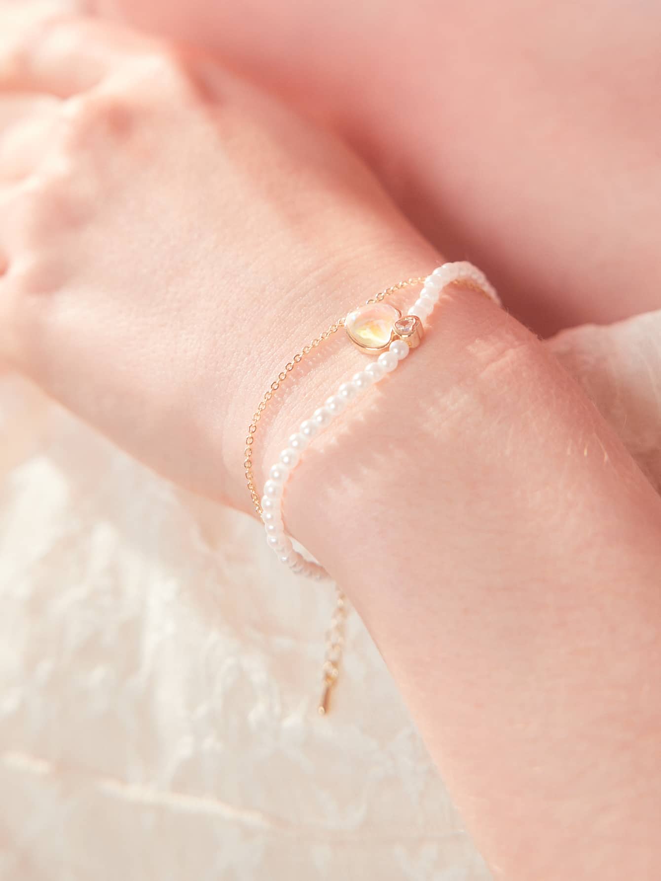 سوار مزين بلؤلؤ صناعي وتعليقة قلب مرصعة بحجر الراين