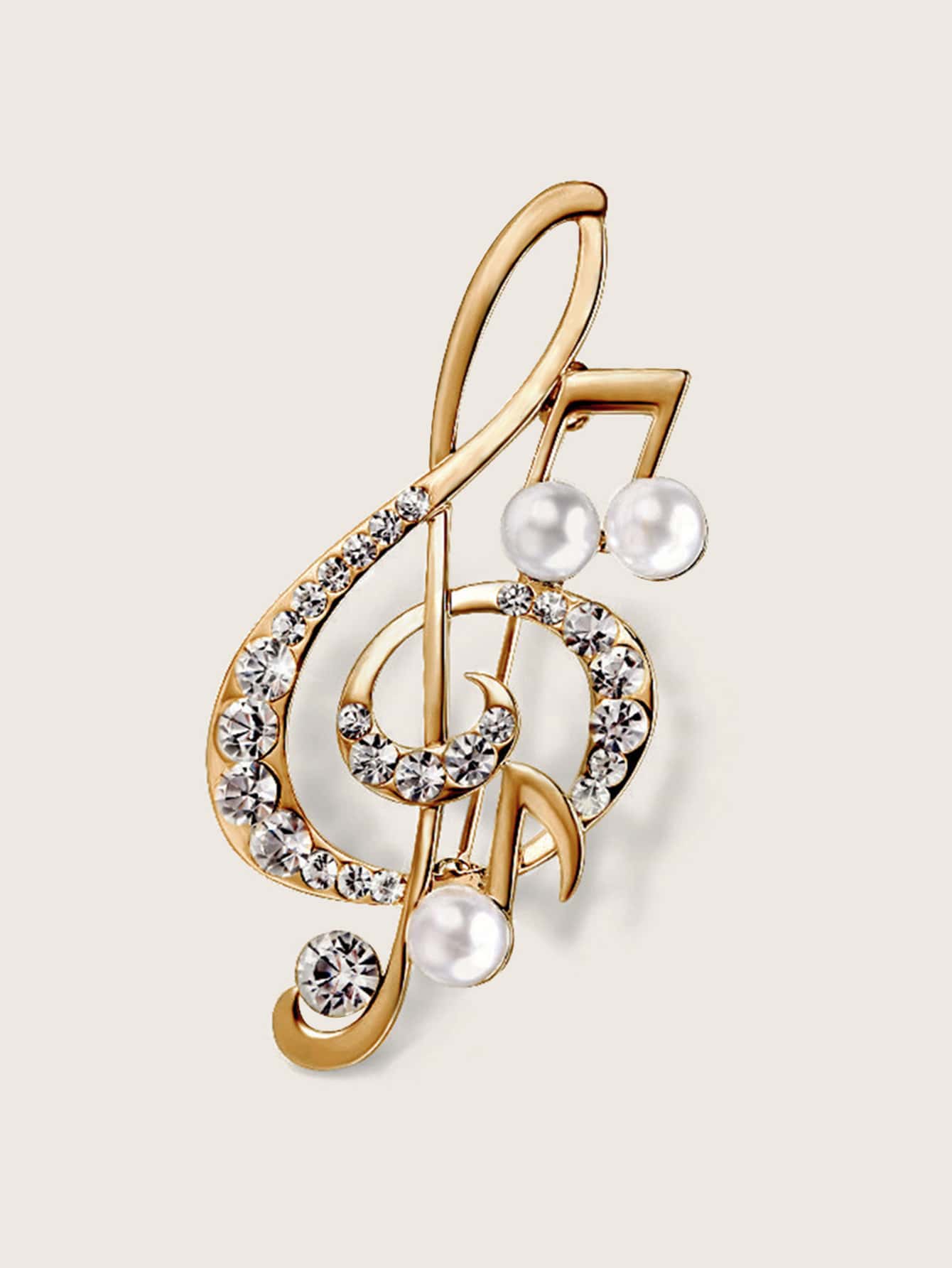 دبوس زخرفة بملاحظة موسيقى بحجر الراين