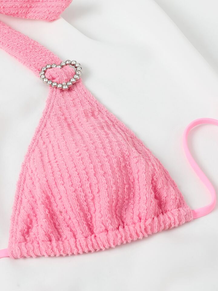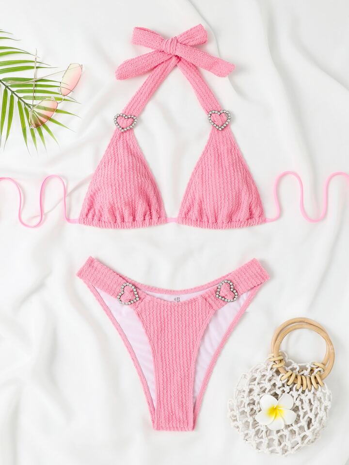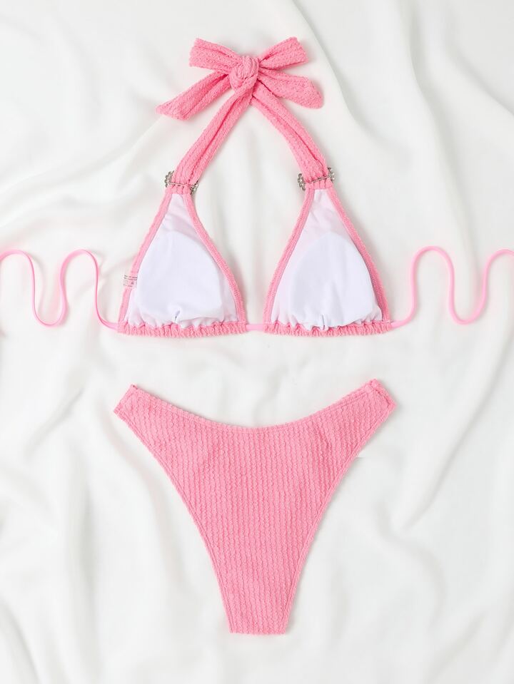 مجموعة بيكيني صيفية مكونة من هالتر مربوط بحلقة مرصعة بالراين، وثلاثي مثلث، للشاطئ