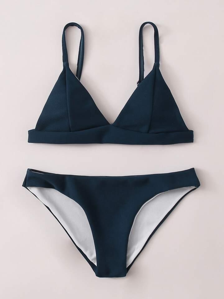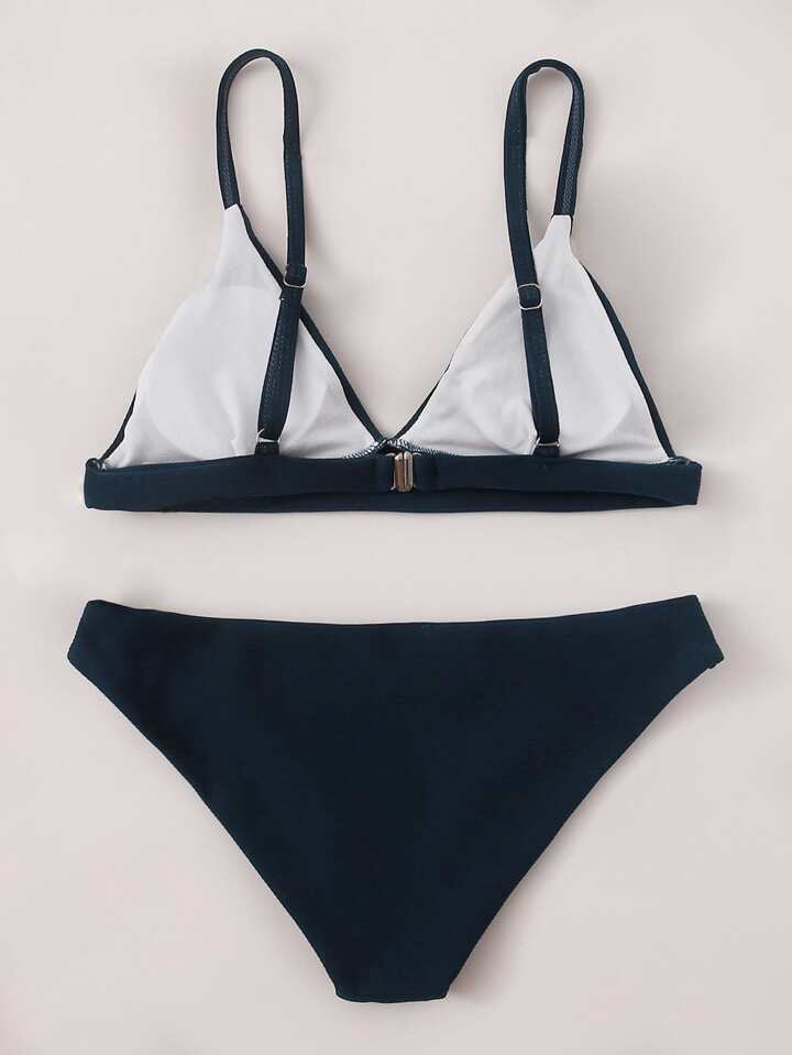 مجموعة بيكيني مثلثة بتفاصيل درزات مضلعة للشاطئ الصيفي