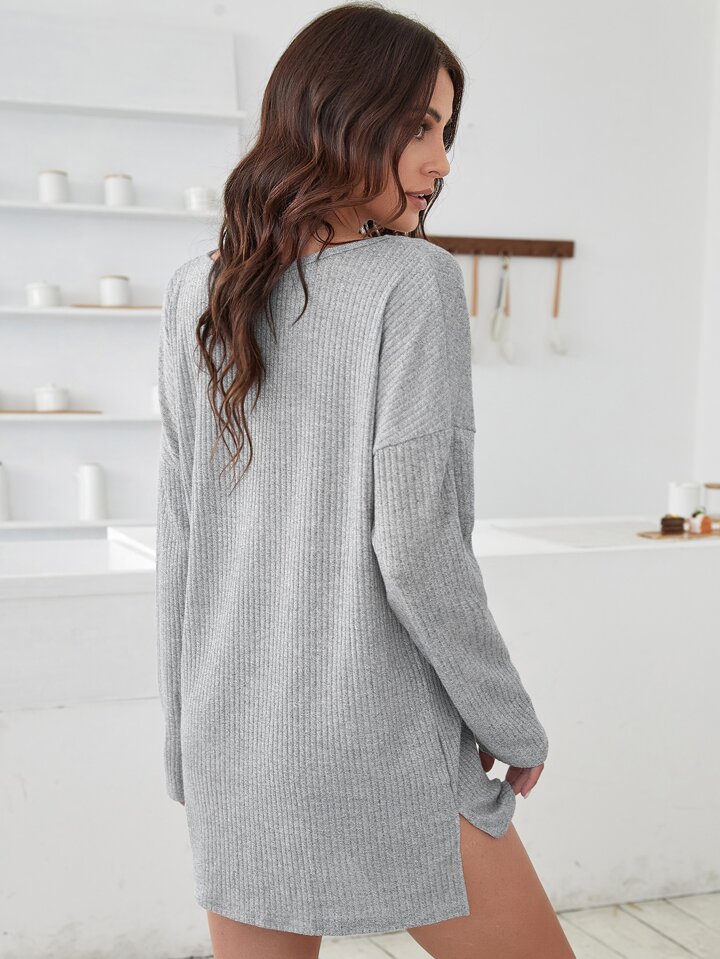 ملابس علوية مريح للاسترخاء بياقة منخفضة وأكتاف متدلية، محبوك بنسيج مضلع، مناسب للخريف والشتاء