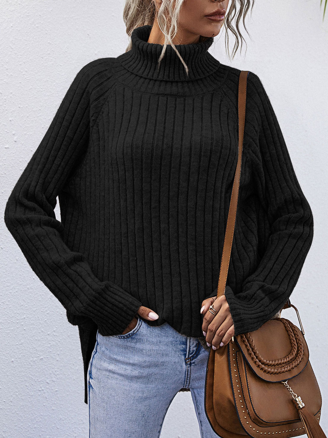 سترة صوفي محبوك مضلع بعنق عالي