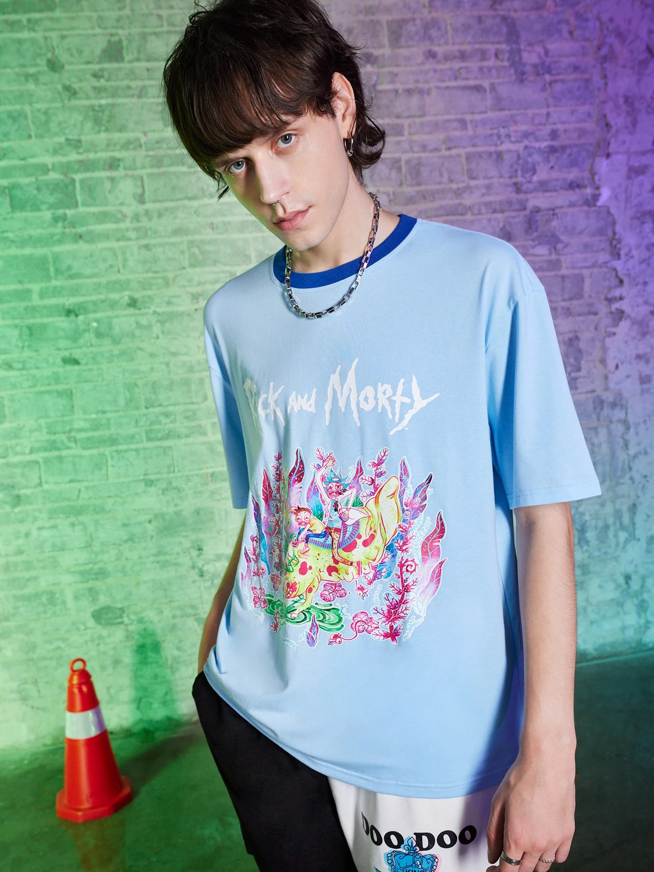 Rick and Morty | ROMWE تي شيرت كبير الحجم حرف صور رسوم كارتون للشباب