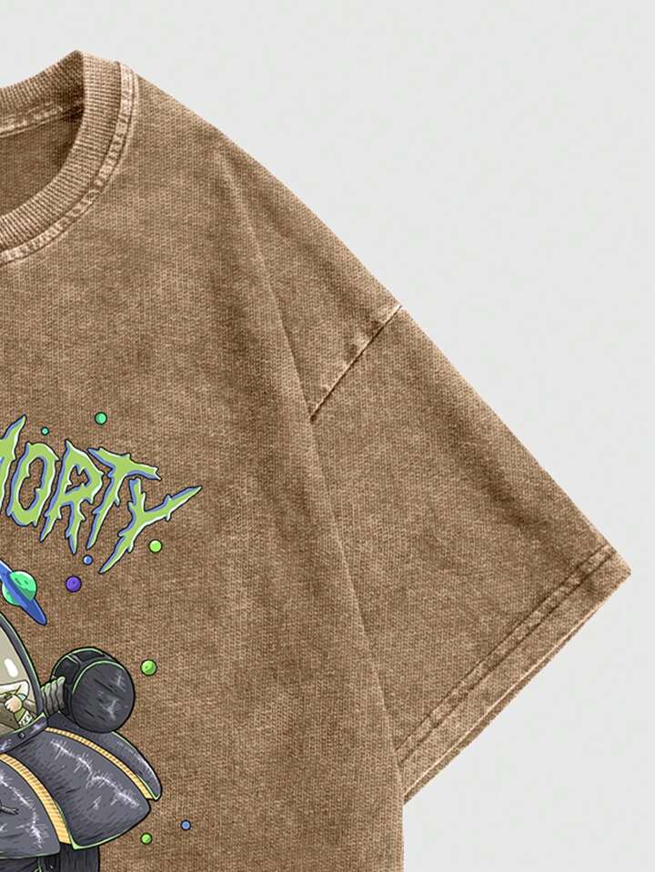 Rick and Morty | ROMWE تي شيرت تي-شيرت رجالي قصير الأكمام كاجوال بطبعة سفينة فضائية كرتونية، صيفي