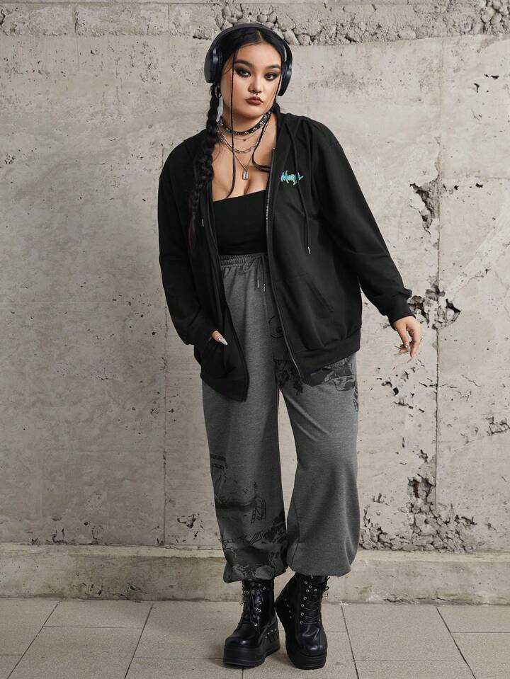 Rick and Morty | ROMWE هودي بسحاب ورسوم كرتونية وحروف