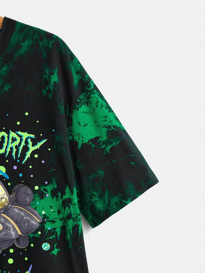 Rick and Morty | ROMWE تي شيرت مطبوع بخط رسم كرافت الملون، للجامعة، يناسب الجنسين