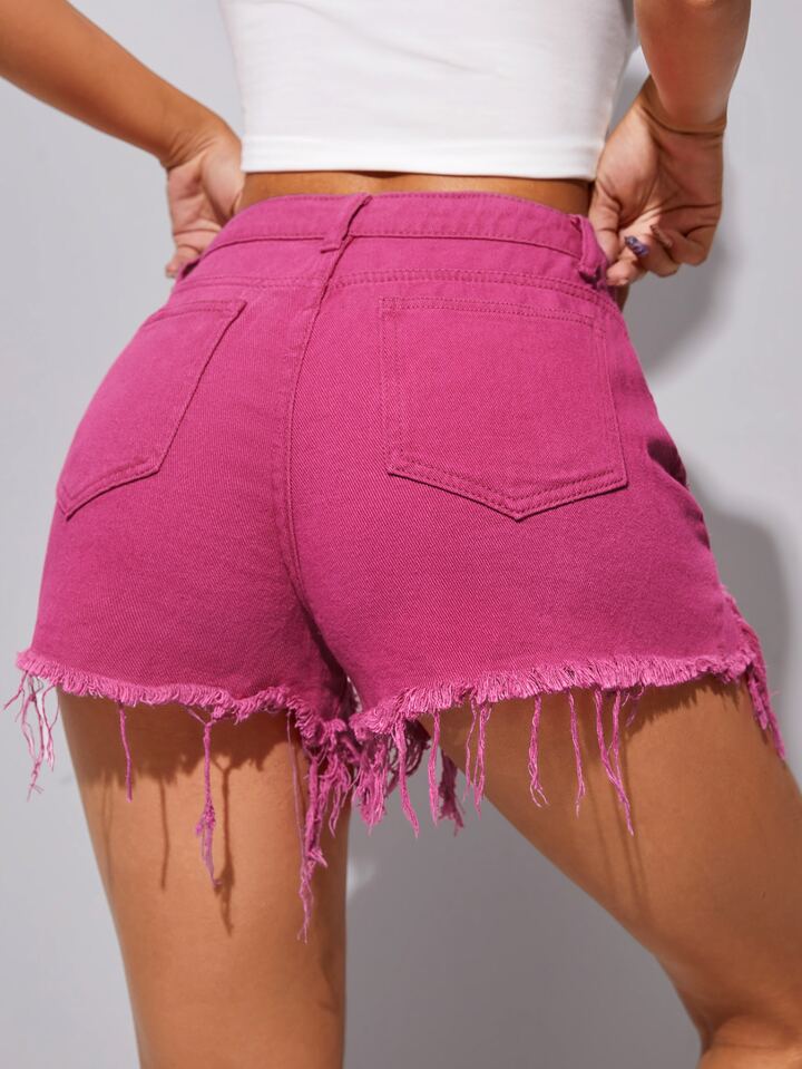 شورت دنيم ممزق بحافة مهتري الحواف