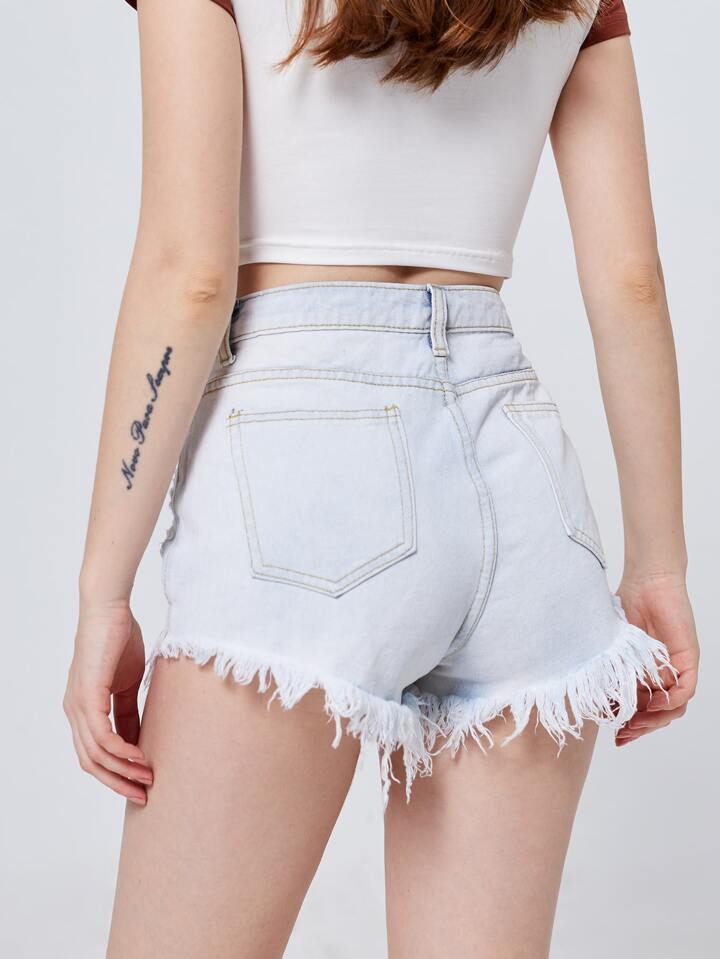 بنطلون قصير من الدنيم بحافة خام ممزق