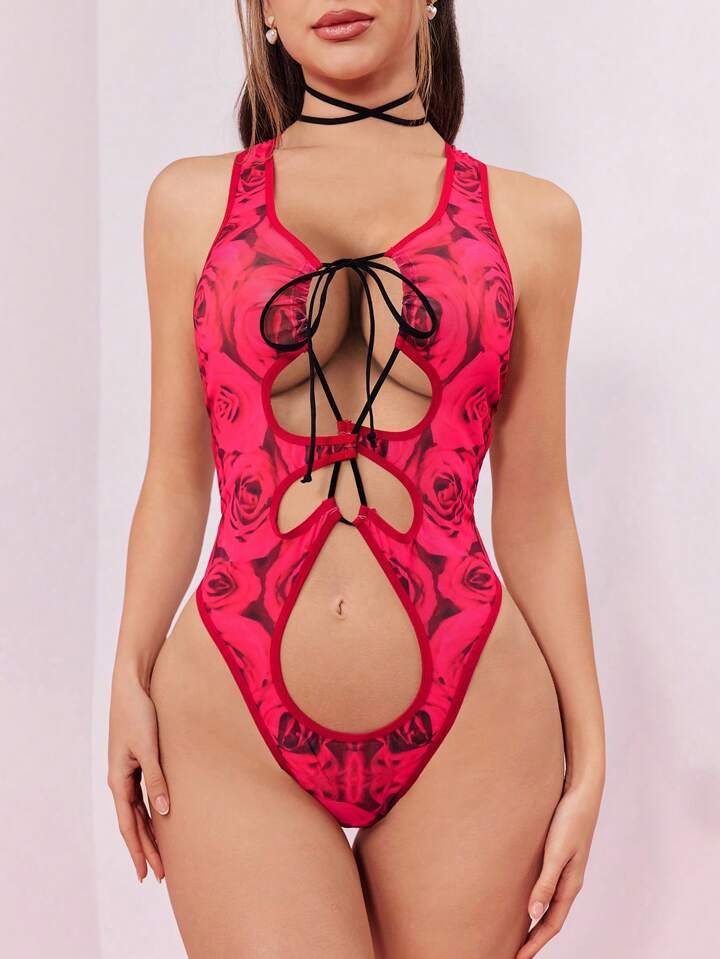 جمبسوت سباحة رومانسية مزينة بالورود والدانتيل للعشاق في عيد الحب