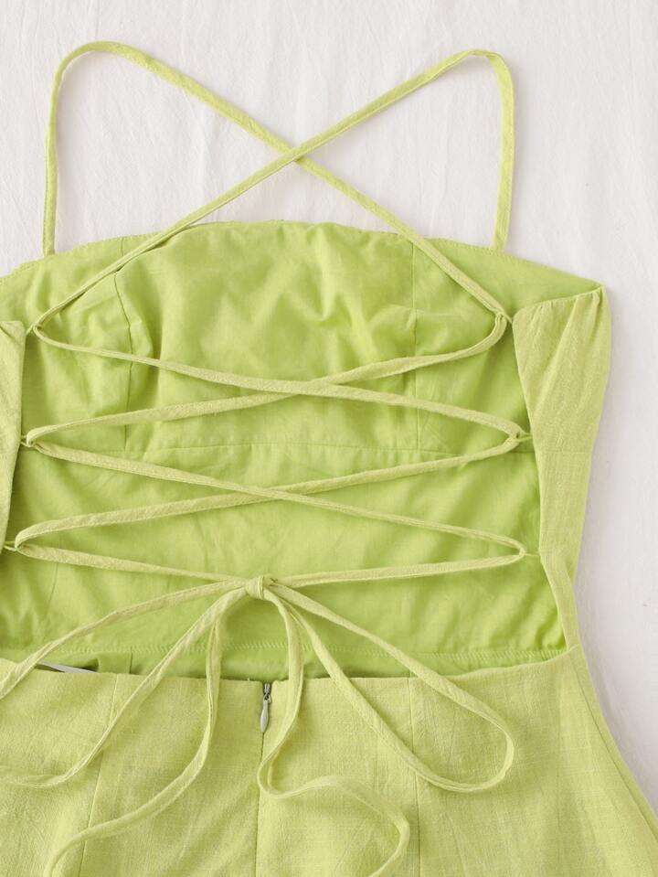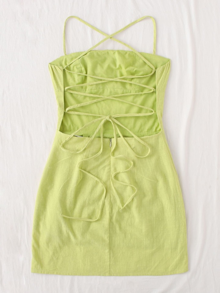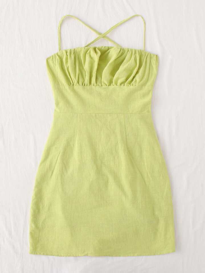 فستان طية صدر متقاطع مكشوف الظهر معقود