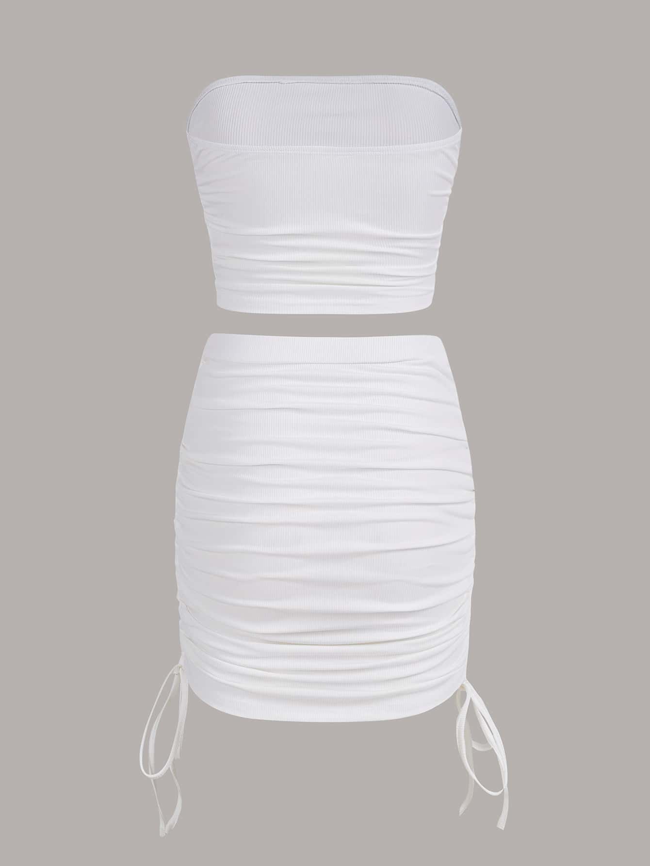 حافة مجمع لباس علوي انبوب قصير مع رباط تنورة ضيقة