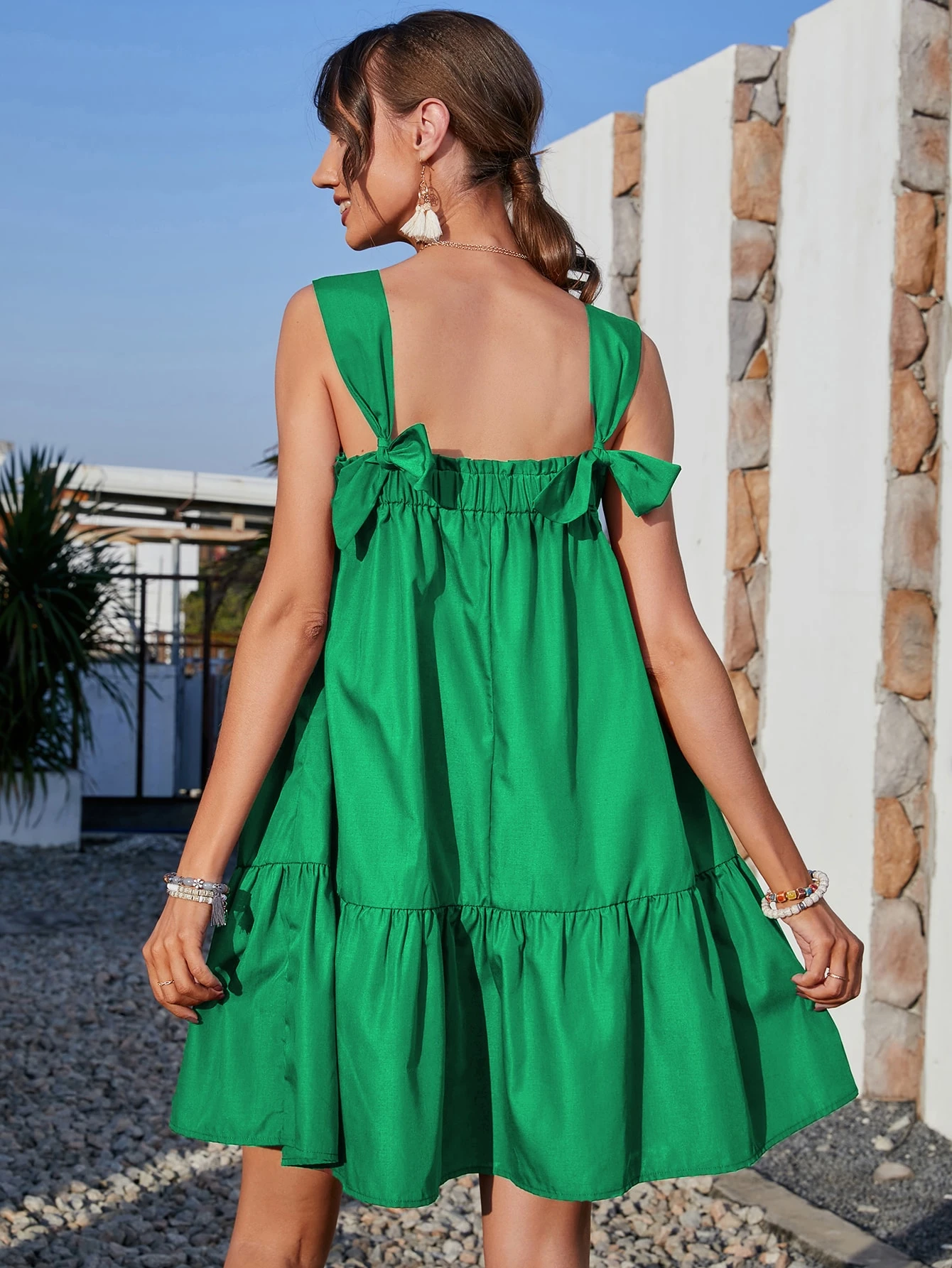 فستان حافة مكشكشة تفاصيل معقود مقلم بهدب