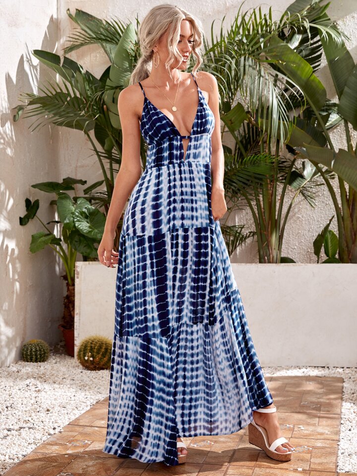 فستان كامي بصبغ متعادل وبحافة مكشكش