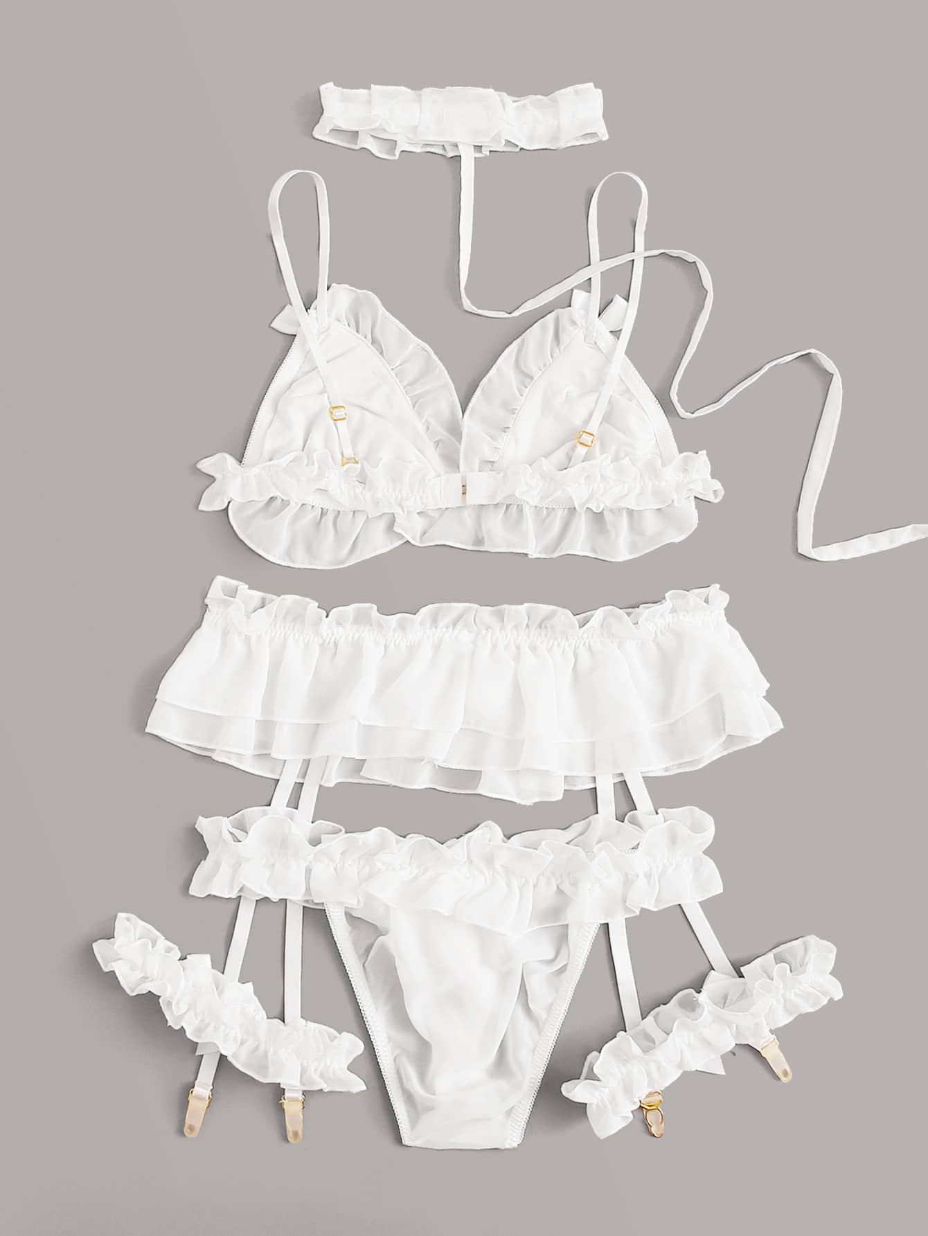 طقم ملابس داخلية مع شريط كشكش وطوق للرقبة