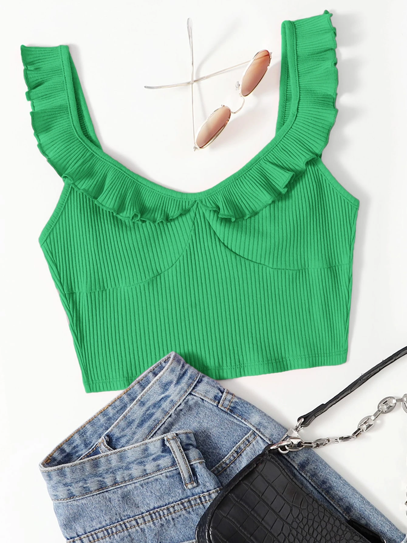 لباس علوي مقصوص محبوك ومضلع ومقلم بكشكش