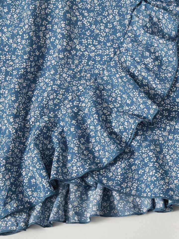 فستان مزهر معقود جانبي مطوي ومقلم مكشكش
