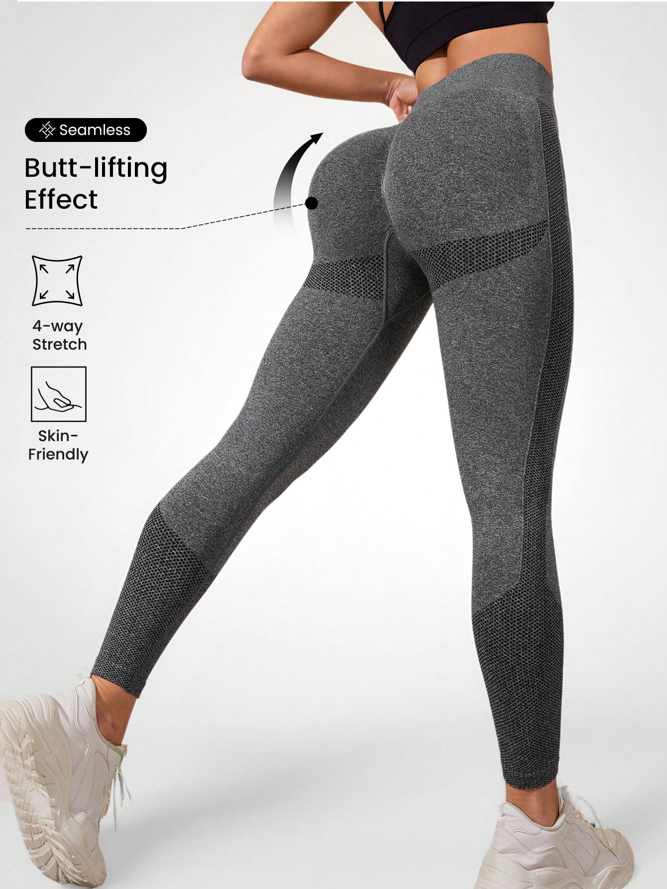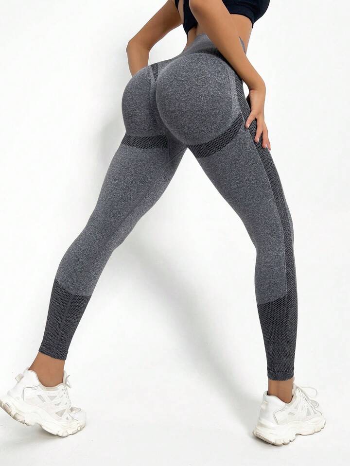 سروال رياضي نسائي بخصر مرتفع وشد البطن وتفاصيل مشدودة، بنطلون رياضي مرن بدون خياطات للرياضة واليوغا