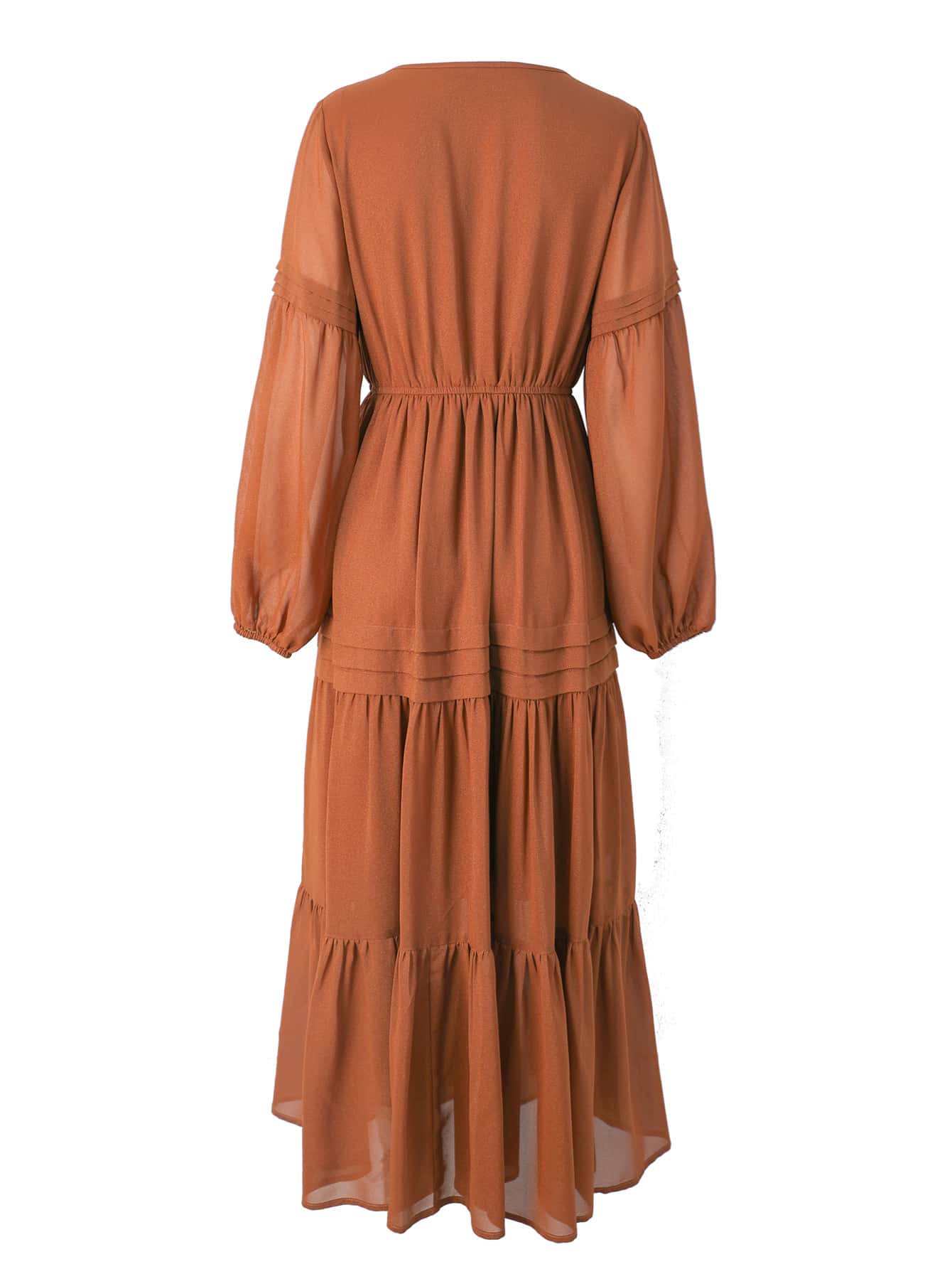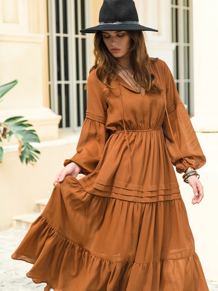 Rusttydustty فستان طويل أنيق للنساء من الشيفون بياقة على شكل حرف V مع ربطة عنق، طبيعي وبوهيمي مناسب للاستخدام اليومي والشاطئ وحفلات الموسيقى في هاواي والعطلات الاستوائية