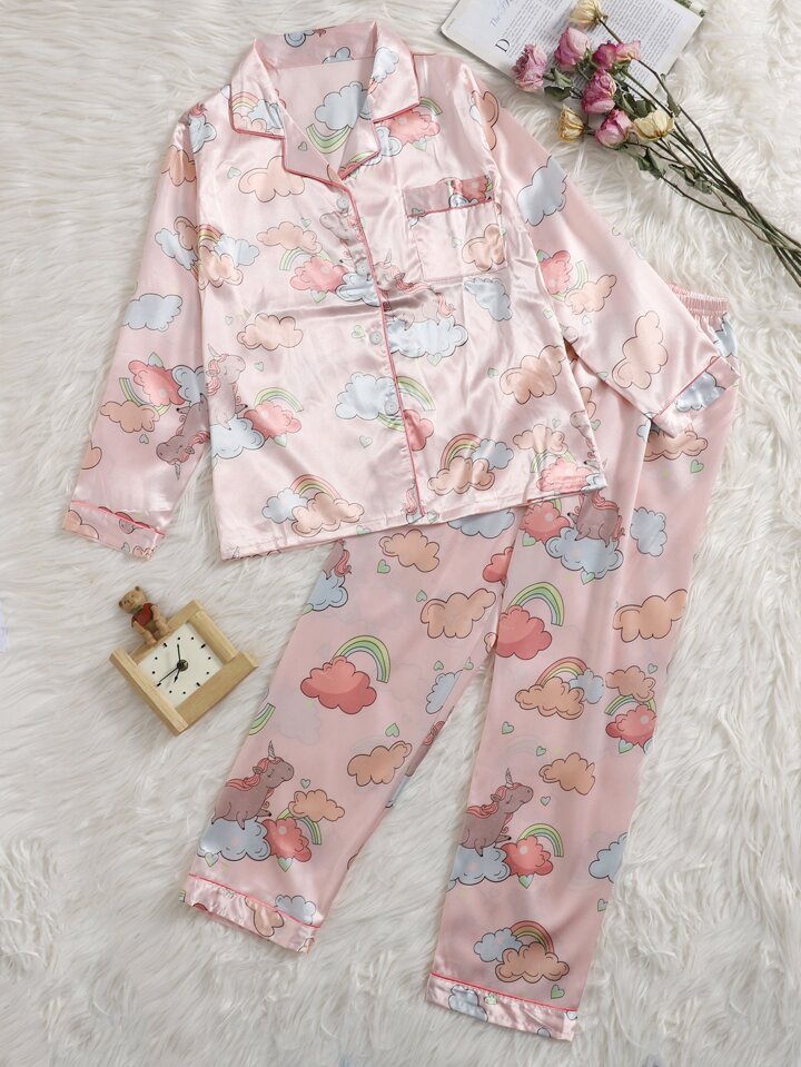 طقم ملابس ليلي الجيب تصميم الكرتون لطيفة