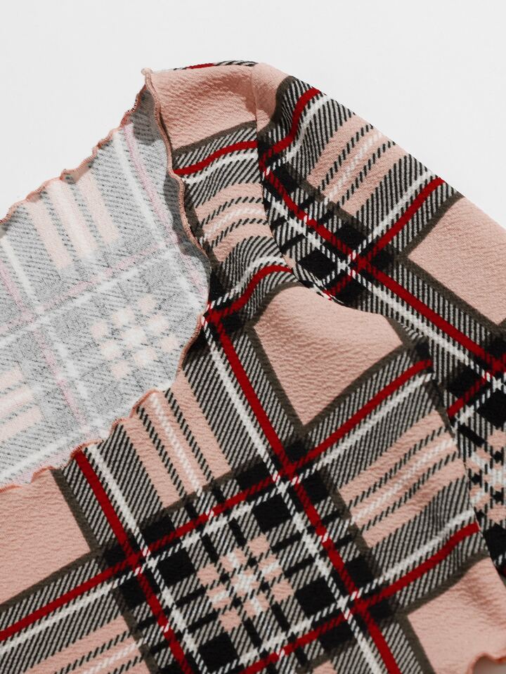 تي شيرت مريع النقش مقلم نمط الخس وبياقة عميق