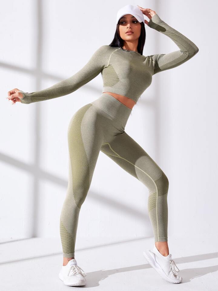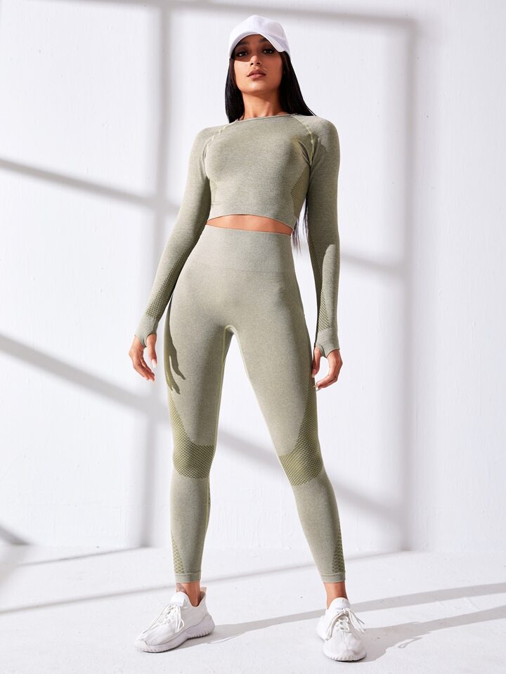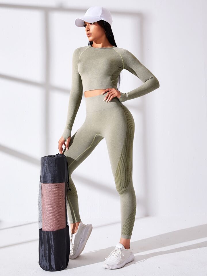 مجموعة ملابس رياضية بأكمام راغلان خالية من الوصلات وحزام خصر واسع
