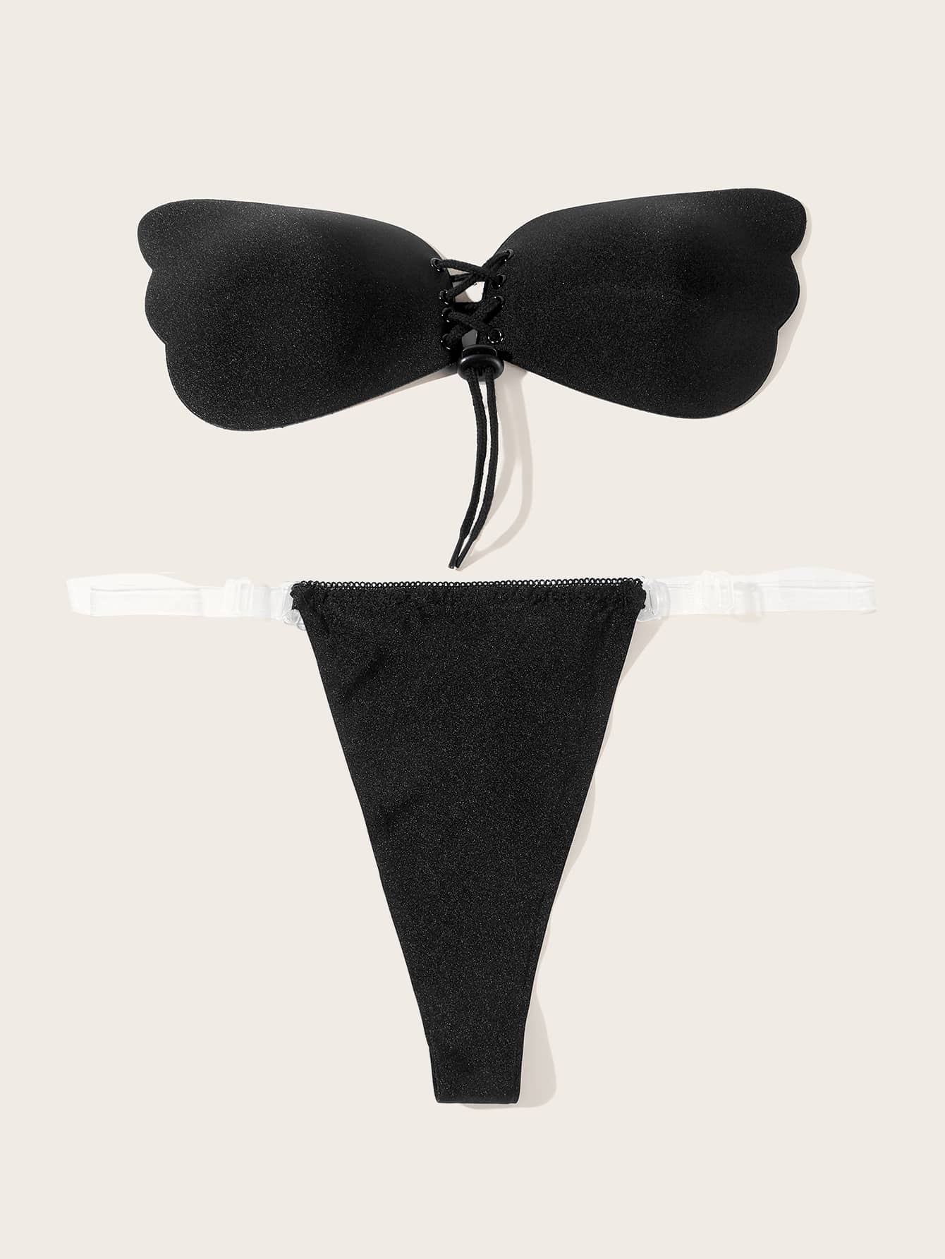 طقم لانجري تونغ مع حمالة صدر لاصق ذاتي